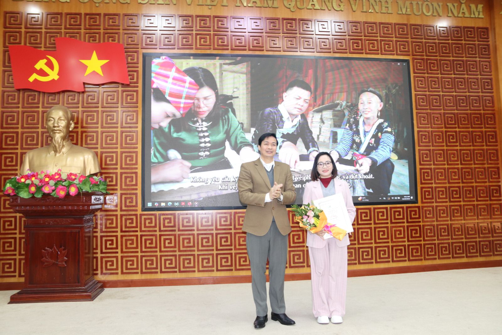 省党委員会宣伝大衆動員部副部長、組織委員会副委員長のグエン・ディン・トアン同志が、作家グエン・ティ・トゥーのビデオクリップ「パムーのモン族のユニークな蜜蝋絵画芸術」に2等賞を授与した。