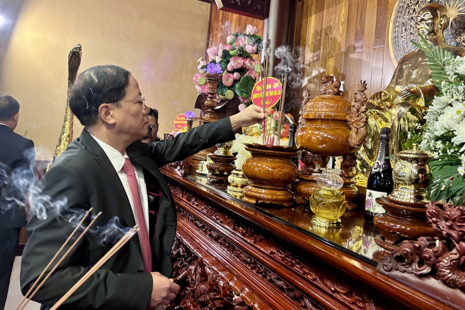 省人民委員会のファム・アン・トゥアン委員長がホーおじさんの寺院でホーおじさんに線香を捧げる