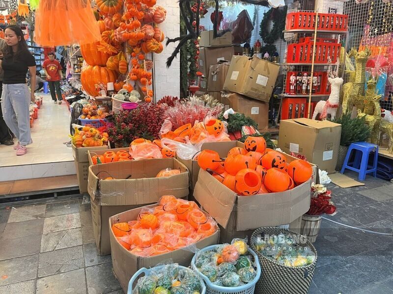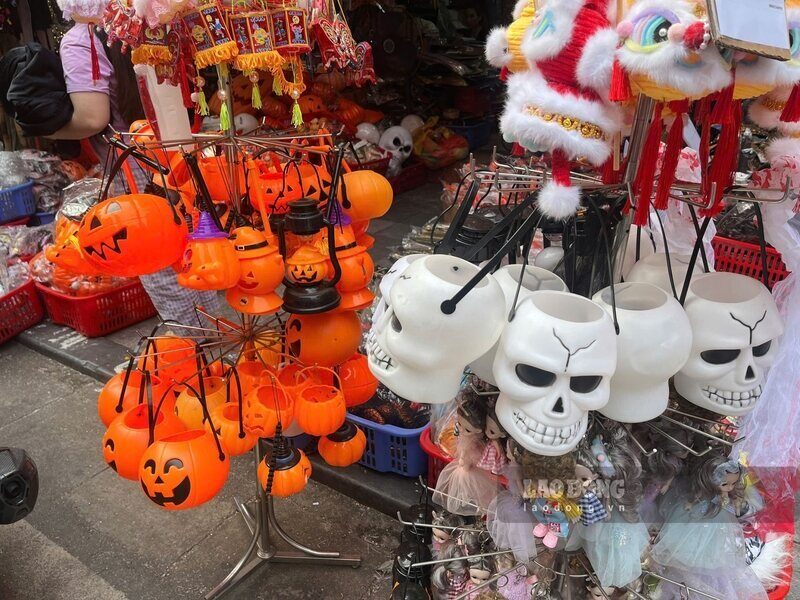 お客様から最も人気の高い商品は、ランタン、カボチャのかご、マスク、ヘッドバンド、ランタン、そして様々なホラーや奇妙なデザインの衣装です。カボチャのかごやランタンは、サイズに応じて5万~15万ドンです。魔女のローブや一連の衣装は、種類やモデルに応じて13万~18万ドンです。