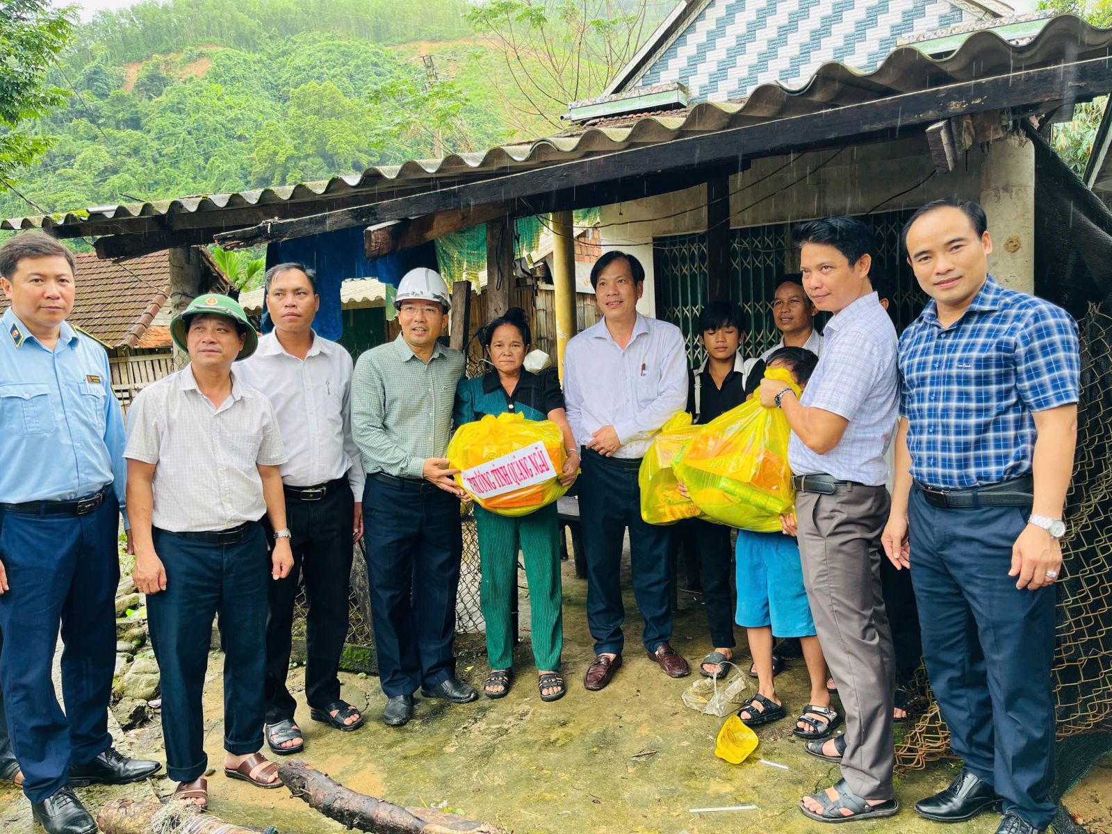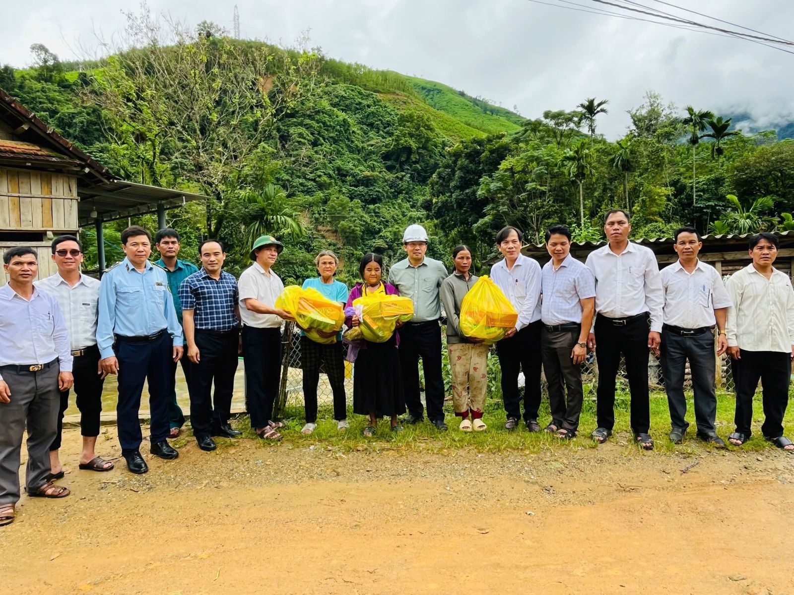 同日午前、グエン・タン・マン商工局長率いる商工局の実務代表団は、土砂崩れや鉄砲水のリスクが高いバサ村を訪問した。長引く大雨により地域住民は孤立し、多くの世帯が家を放棄して安全な場所へ避難せざるを得なくなった。分かち合いと相互愛の精神に基づき、代表団はバサ村人民委員会と連携し、地域で困難に直面している世帯に米、牛乳、インスタントラーメン、飲料水など16品目を、土砂崩れの危険地域に居住したために避難を余儀なくされた家族に14品目を贈呈した。