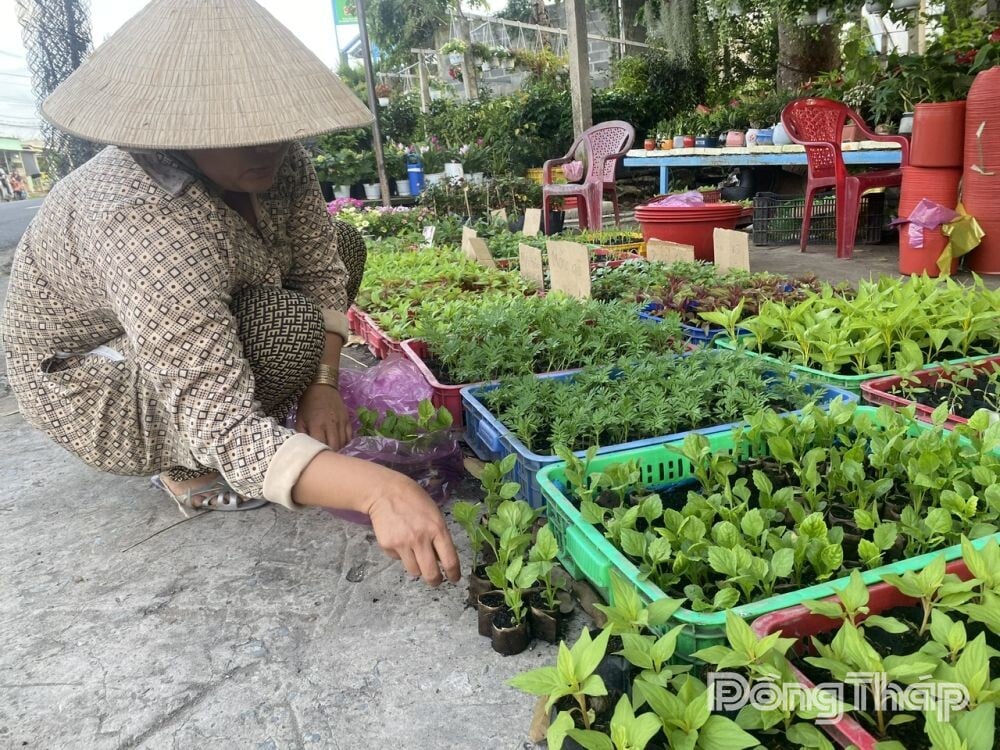 国道50号線(ミーフォン区を通る区間)沿いの花屋や植物園は、いつも以上に賑わっています。マリーゴールド、ケイトウ、ヒマワリ、キク、観賞用のトウガラシ、カーネーションなど、様々な苗木を買い求める人々が立ち寄り、テト(旧正月)に咲く花を待ちます。