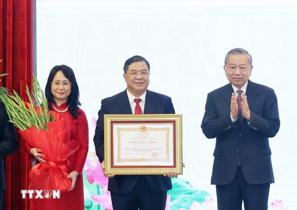 式典では、党と国家の指導者を代表して、ト・ラム書記長が党中央事務局に対し、党の指導活動の組織と運営において政治局と書記局に奉仕する戦略諮問業務における優れた功績と、国の社会経済発展における偉大な功績を称え、一級労働勲章を授与した。