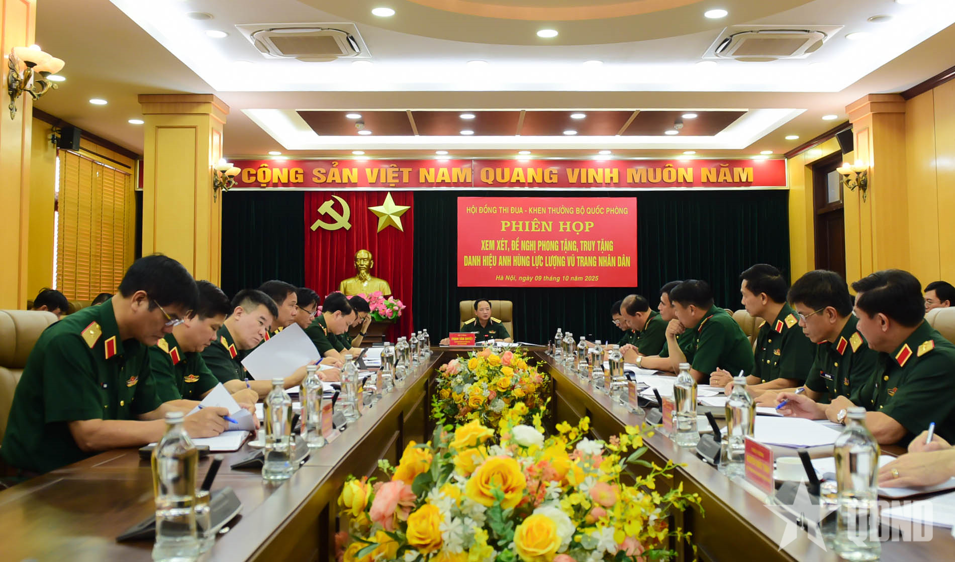会議では、国防省軍事技術評議会常設機関宣伝部のグエン・ヴァン・ドゥック中将が、抗戦と近代化の期間における人民武力英雄の称号の授与および死後授与が提案されている団体と個人のリストを報告した。