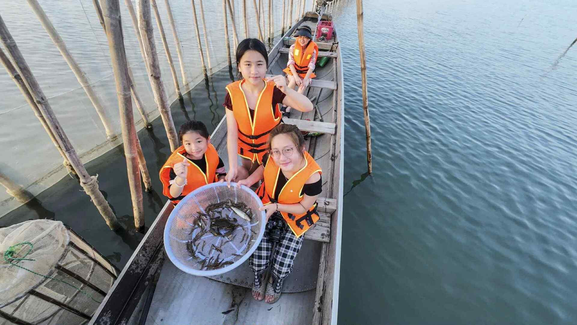 Hồi tháng 7, chị Trần Hiếu (Hà Nội) dành 17 ngày lái xe đưa 3 con gái xuyên Việt. Trải nghiệm gia đình nhớ nhất chính là 2,5 tiếng trải nghiệm làm ngư dân ở Đầm Chuồn. Bốn mẹ con theo chân ngư dân ra câu cá, kéo lưới, ngắm mặt trời mọc. Hải sản được mang về chòi canh dựng trên mặt nước để nướng và thưởng thức.