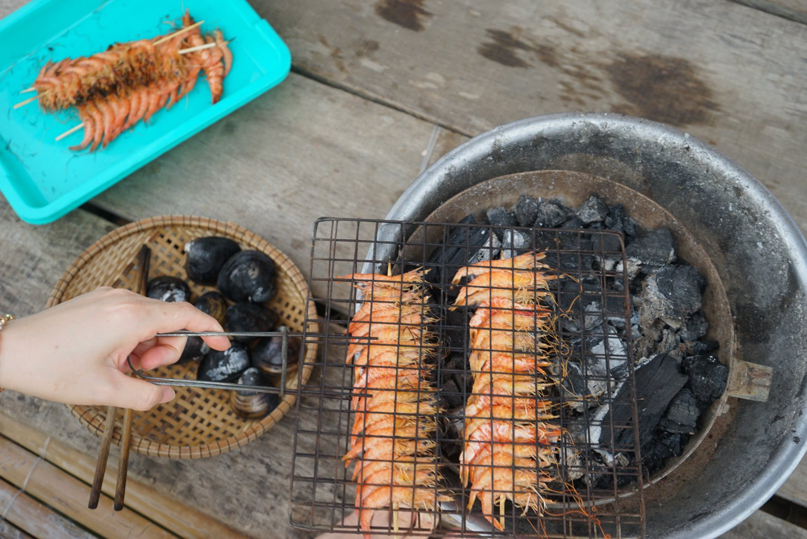 Các loại hải sản tươi rói sẽ được hấp, nướng trực tiếp tại các nhà chồ giữa đầm.