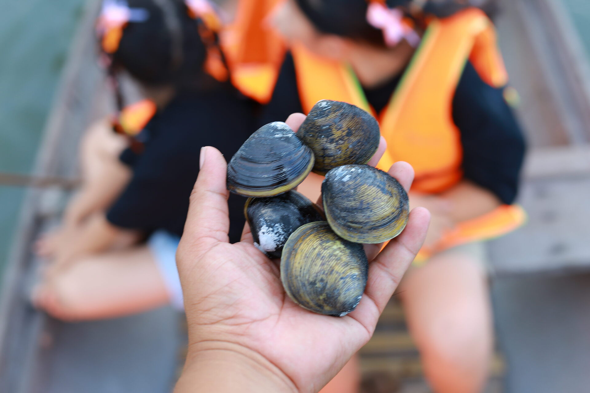 Từ trên thuyền, du khách có thể bắt gặp những người dân đội nón lá, mũ tai bèo đang nhấp nhô theo từng đợt sóng, bên cạnh là những chiếc đò nhôm, thùng xốp trắng. Đây là cảnh bà con "đạp trìa", tức là người dân ngâm mình dưới nước, liên tục dậm đạp chân xuống lớp bùn để tìm bắt trìa (loài ngao sống ở vùng nước lợ).