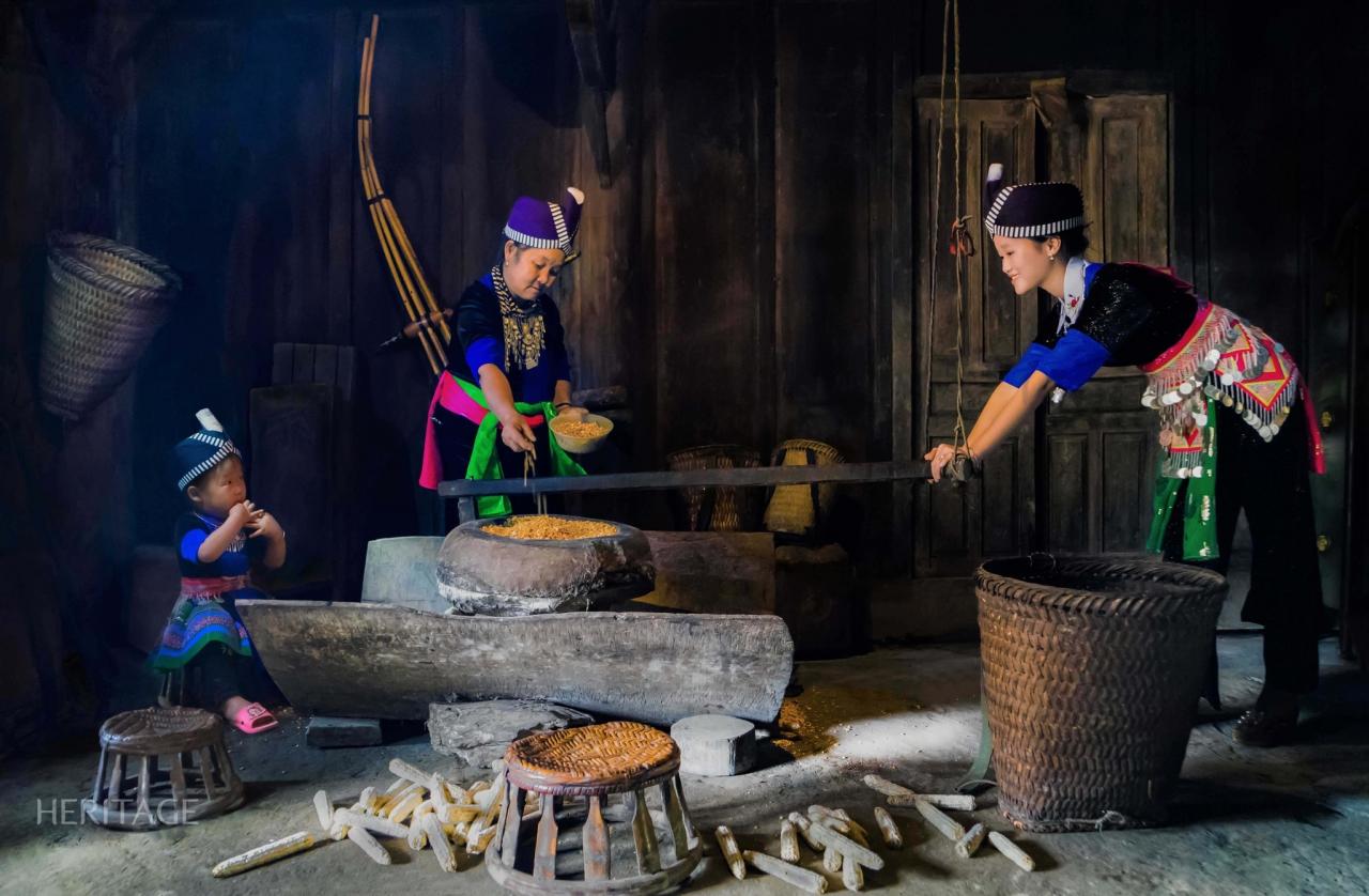[caption id="attachment_522172" align="aligncenter" width="2048"]Cộng đồng các dân tộc thiểu số sống ở nơi đây bao thế hệ luôn giữ một lối sống hài hòa với thiên nhiên và tinh thần mộc mạc, tự nhiên như cỏ cây, hoa lá. Dọc đường đi, chúng tôi ghé vào những bản làng của người Thái, trò chuyện với họ dưới mái nhà sàn, ngắm nhìn những sản phẩm thủ công từ mây tre và vải dệt thổ cẩm. Đãi khách phương xa, người Thái mời người Kinh dưới xuôi cùng uống rượu cần, thưởng thức ẩm thực vùng cao rồi nhảy sạp tưng bừng theo nhịp tiếng ca.