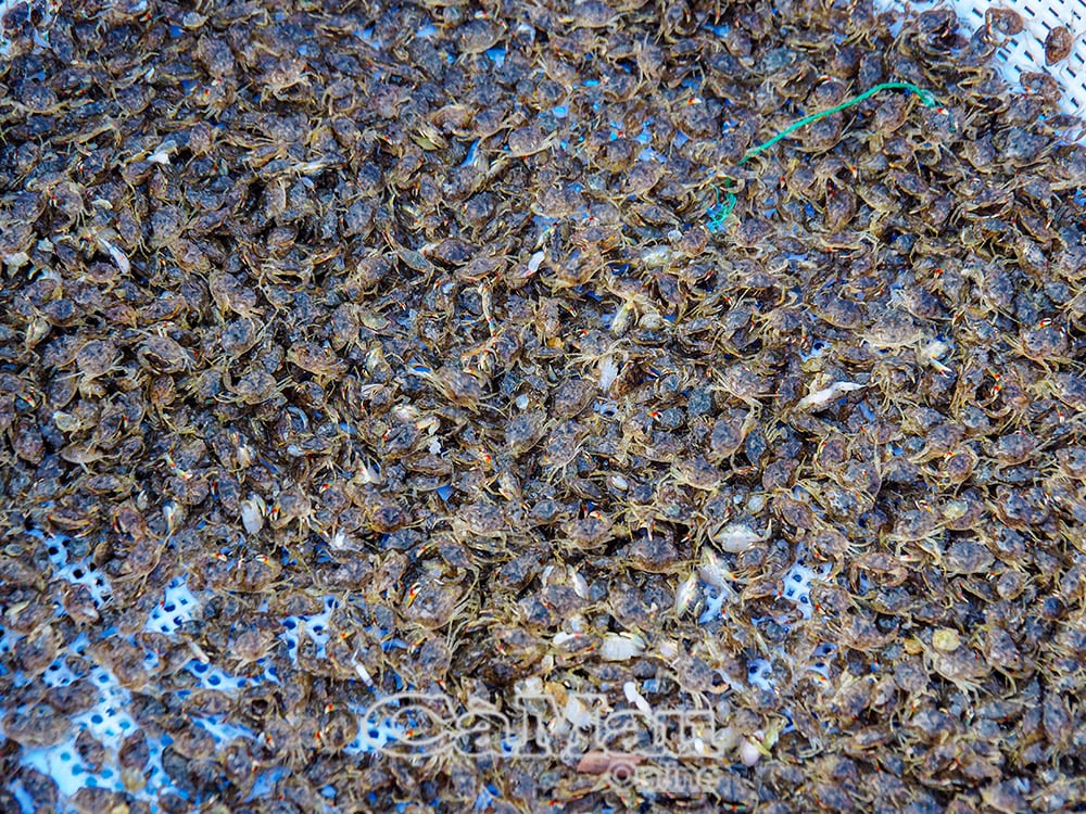 Cua giống được bà con ương dưỡng lại trong lưới dèo, kết hợp cho ăn, tầm 15-30 ngày khi cua thích nghi môi trường, khoẻ mạnh sẽ thả ra vuông tôm, ăn thức ăn tự nhiên.