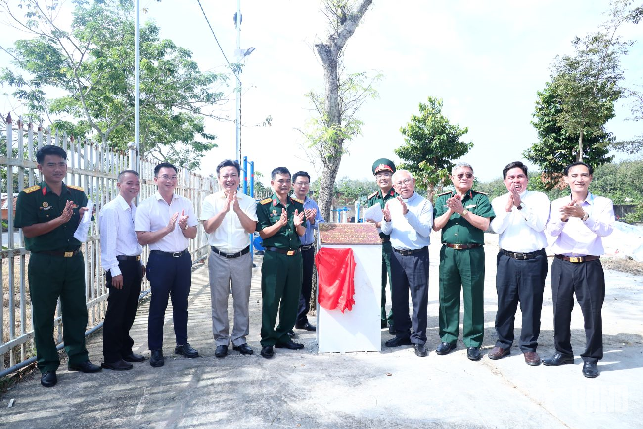 | Các đại biểu cắt băng khánh thành và gắn biển công trình. |