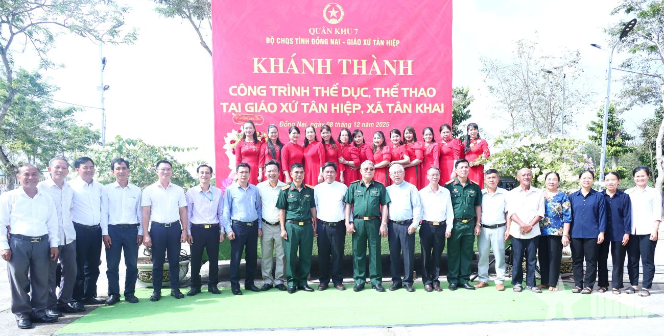 Đại tá Bùi Văn Sỹ, Phó chính ủy Bộ Chỉ huy Quân sự tỉnh Đồng Nai cho biết: Thời gian qua, nhằm cụ thể hóa chủ trương “Tăng cường gắn kết thân thiện, hỗ trợ, giúp đỡ đồng bào dân tộc, tôn giáo” của Đảng ủy, Bộ tư lệnh Quân khu 7, lực lượng vũ trang tỉnh Đồng Nai đã tích cực đồng hành cùng cấp ủy, chính quyền địa phương chăm lo đời sống tinh thần cho bà con giáo dân. Công trình thể dục - thể thao ngoài trời tại Giáo xứ Tân Hiệp được khánh thành lần này có ý nghĩa nhân văn sâu sắc, thể hiện tình cảm của cán bộ, chiến sĩ lực lượng vũ trang tỉnh cùng cấp ủy, chính quyền xã Tân Khai đối với bà con Giáo xứ Tân Hiệp.