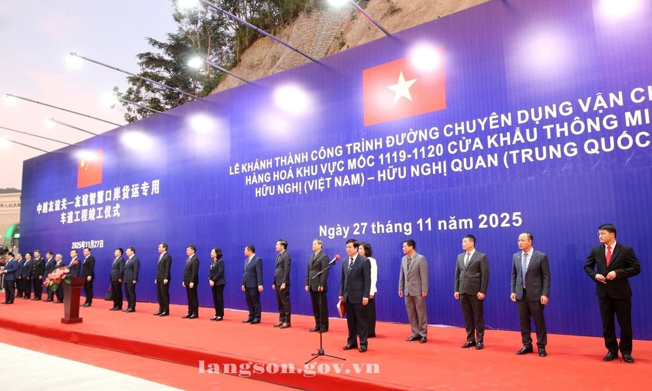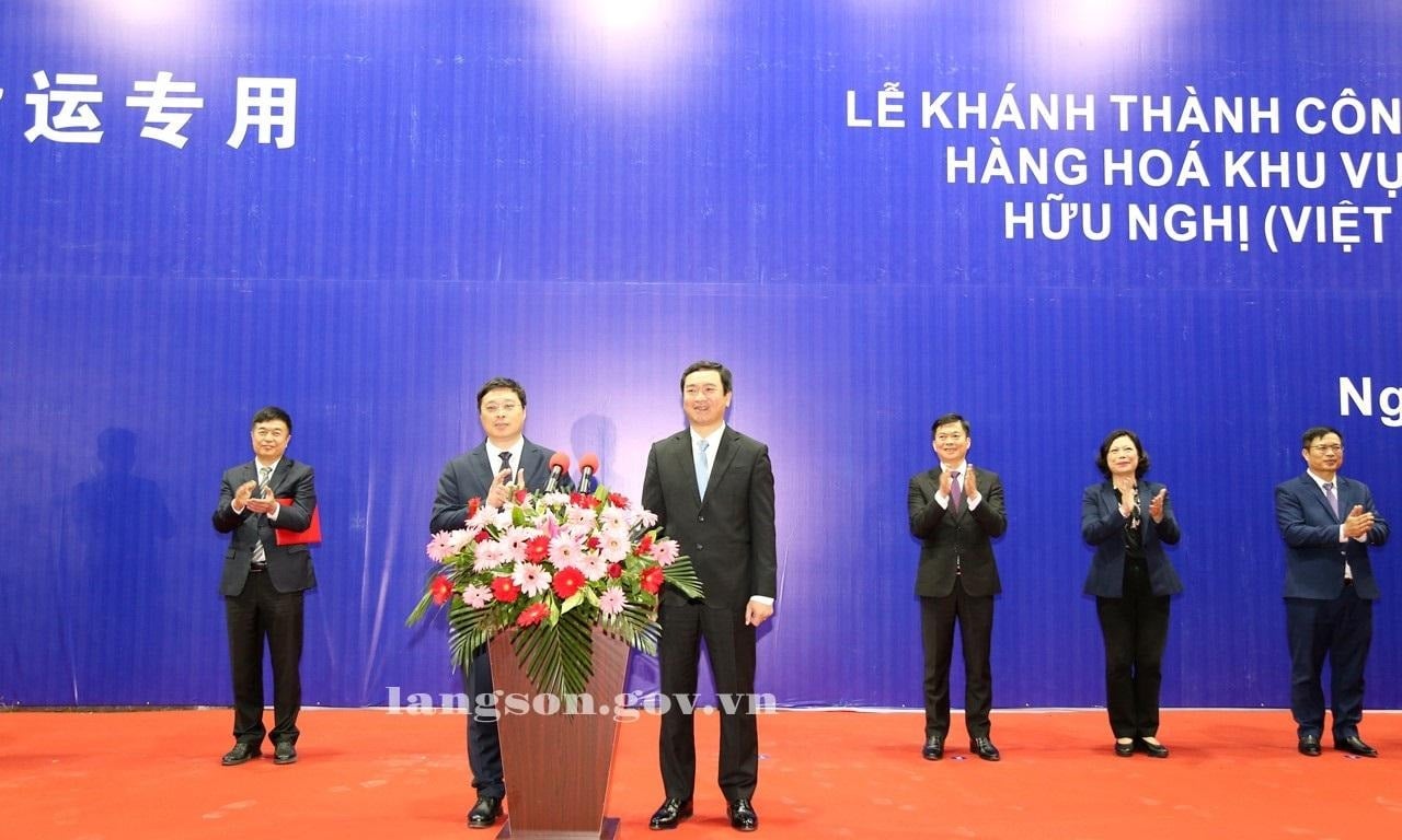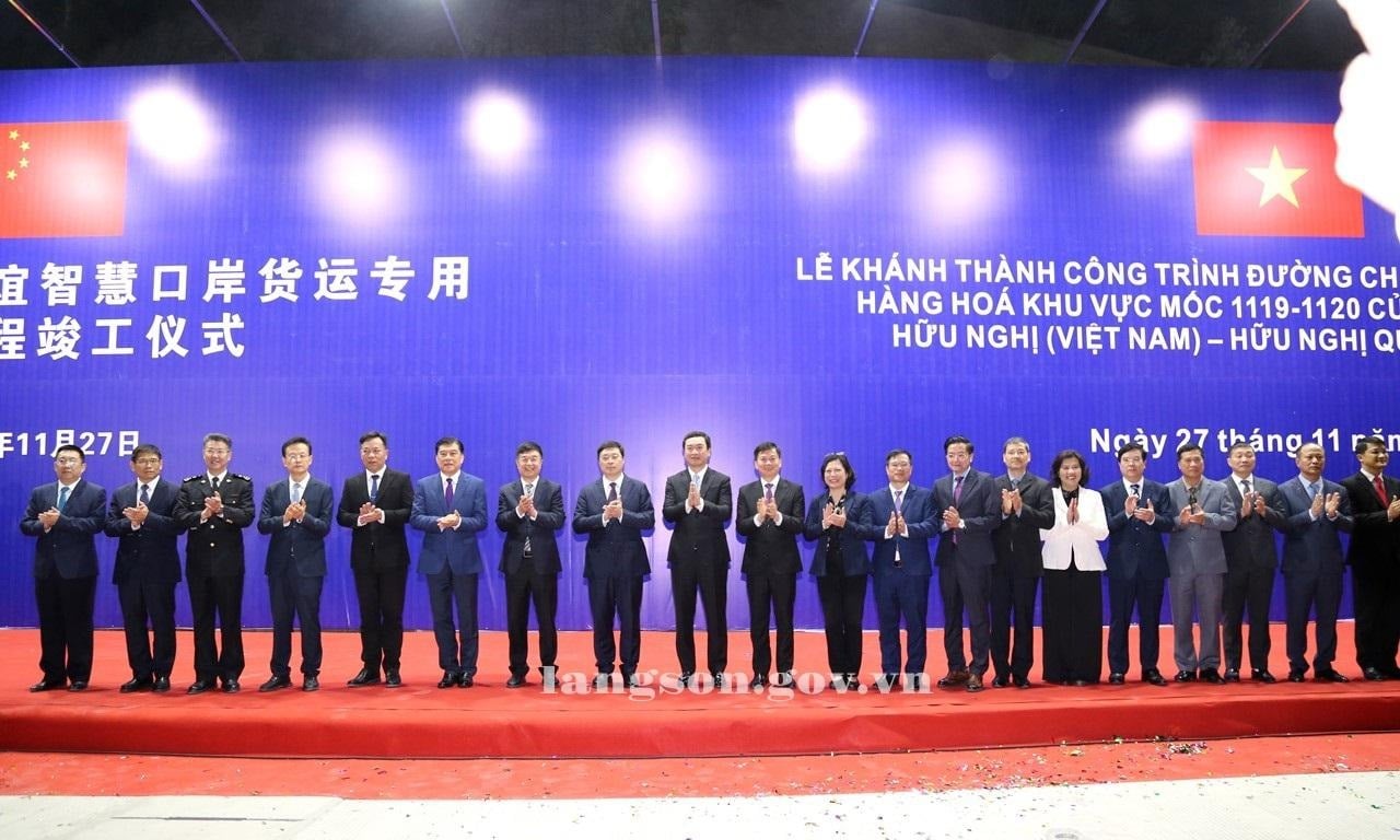 Phát biểu tại đây, đồng chí Nguyễn Cảnh Toàn, Chủ tịch UBND tỉnh nhấn mạnh, năm 2025 là năm có ý nghĩa đặc biệt quan trọng trong quan hệ hữu nghị truyền thống Việt Nam - Trung Quốc, kỷ niệm 75 năm thiết lập quan hệ ngoại giao, đồng thời là Năm giao lưu nhân văn Việt - Trung, theo nhận thức chung và chỉ đạo trực tiếp của Lãnh đạo cấp cao hai Đảng, hai Nhà nước. Công trình đường chuyên dụng vận chuyển hàng hóa khu vực mốc 1119 -1120 có ý nghĩa đặc biệt quan trọng, là bước tiến đầu tiên và mang tính nền tảng trong quá trình xây dựng mô hình cửa khẩu thông minh Hữu Nghị - Hữu Nghị Quan. Công trình không chỉ góp phần nâng cao năng lực thông quan, mà còn tạo tiền đề để triển khai đồng bộ các hạng mục tiếp theo, hướng tới một mô hình cửa khẩu hiện đại, kết nối số hóa, quản lý hiệu quả, an toàn và thuận lợi hơn cho người dân, doanh nghiệp hai bên. Đồng thời, góp phần làm sâu sắc thêm tình hữu nghị láng giềng giữa hai nước, tạo ra động lực mới để thúc đẩy hợp tác thiết thực, hiệu quả và cùng có lợi giữa tỉnh Lạng Sơn (Việt Nam) và Khu tự trị Quảng Tây (Trung Quốc).