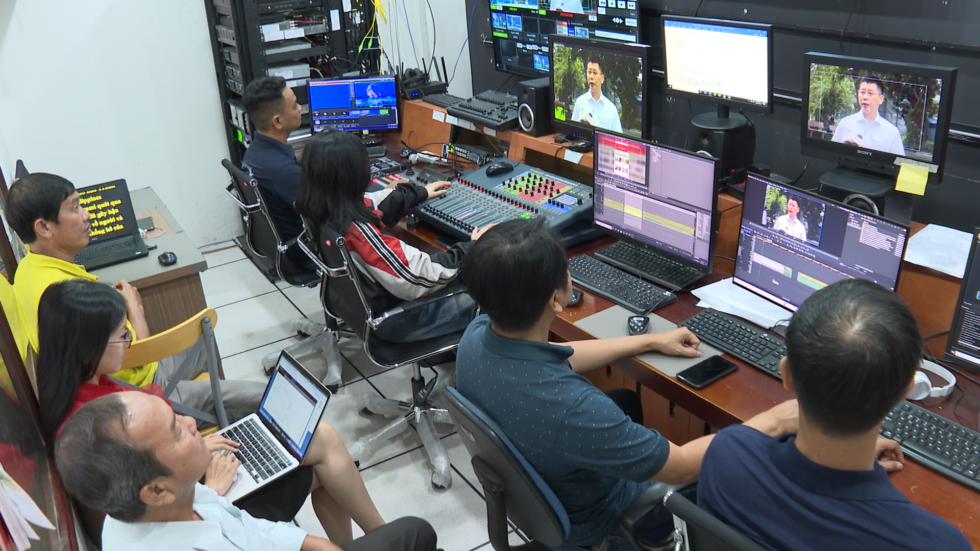 Ê-kíp thực hiện bản tin truyền hình trực tiếp.