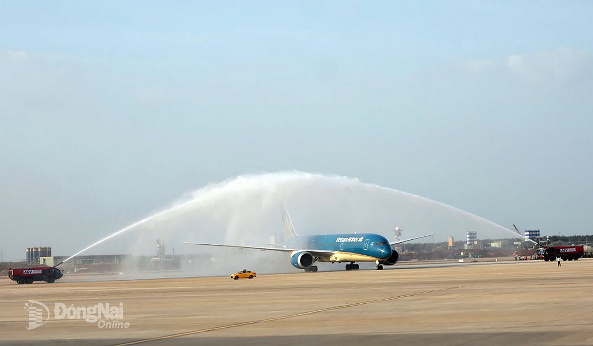 | សម្តែងការស្វាគមន៍ដោយកាំភ្លើងទឹក ដើម្បីស្វាគមន៍ការចុះចតដោយជោគជ័យលើកដំបូងនៃជើងហោះហើរនៅអាកាសយានដ្ឋានឡុងថាញ់។ រូបថត៖ ផាម ទុង។ |