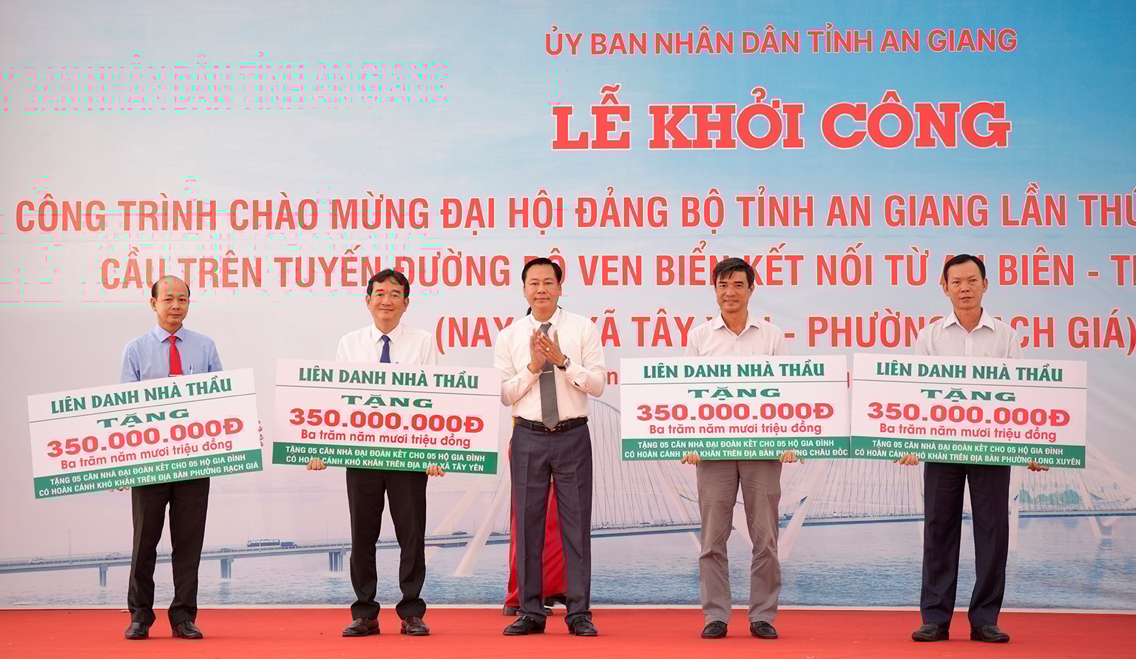 លោក Vuong Duc Truong ប្រធានក្រុមប្រឹក្សាភិបាល អគ្គនាយកក្រុមហ៊ុន Truong Phat Company Limited តំណាងអ្នកម៉ៅការរួមគ្នា បានបង្ហាញផ្ទះ Great Unity ចំនួន 5 ដល់មូលដ្ឋានចំនួន 4 ក្នុងខេត្ត (350 លានដុង/តំបន់)។