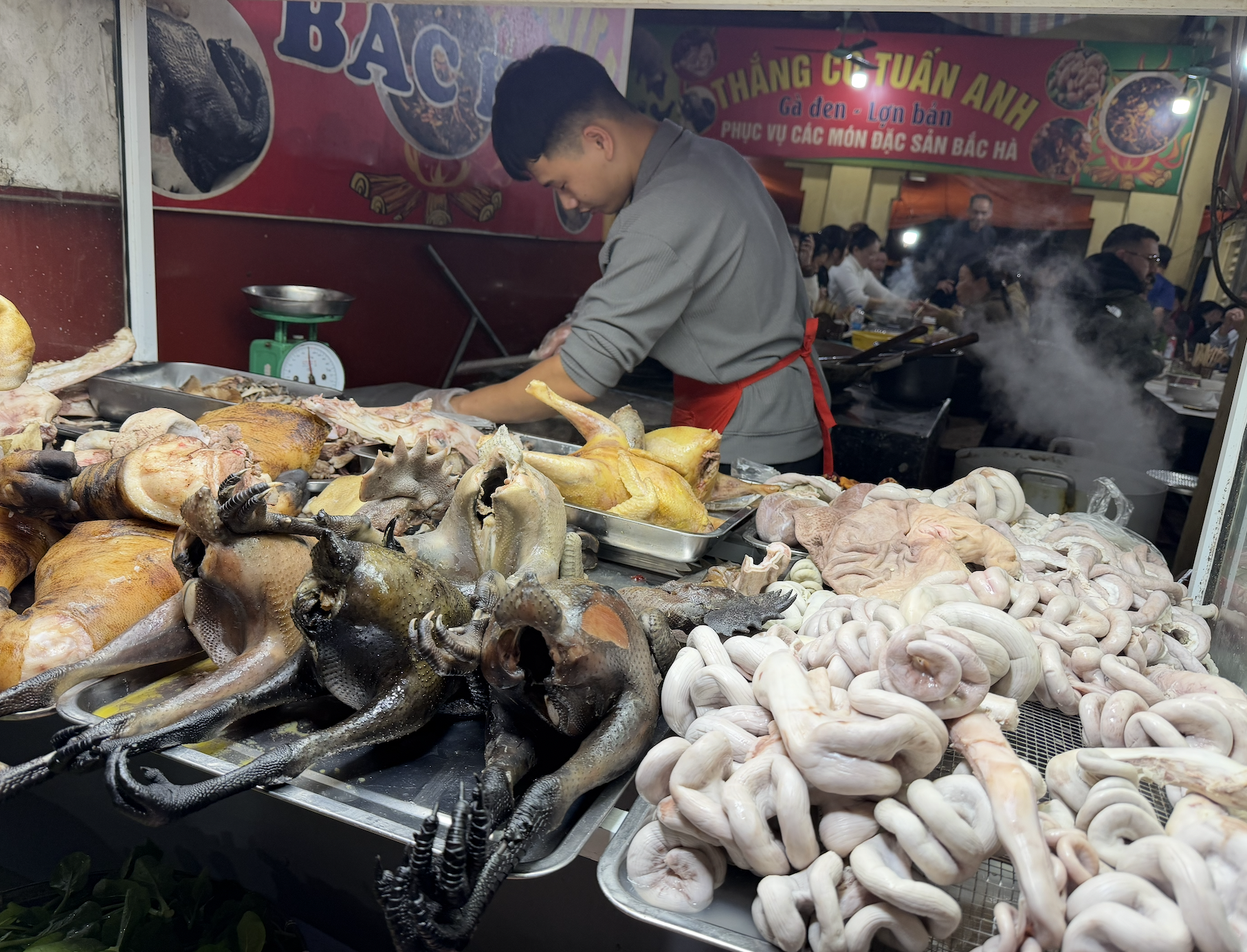 ពេលព្រះអាទិត្យលិច ទីផ្សារអាហារ និងវប្បធម៌ Bac Ha មានភាពអ៊ូអរប្លែកៗ។ នៅល្ងាចថ្ងៃសៅរ៍ និងថ្ងៃអាទិត្យ ផ្សារកំពុងឆាបឆេះដោយភ្លើង សម្លេងម៉ុងខ្លុយ សំណើច និងផ្សែងហុយចេញពីតូបលក់អាហារគ្រប់ទីកន្លែង។