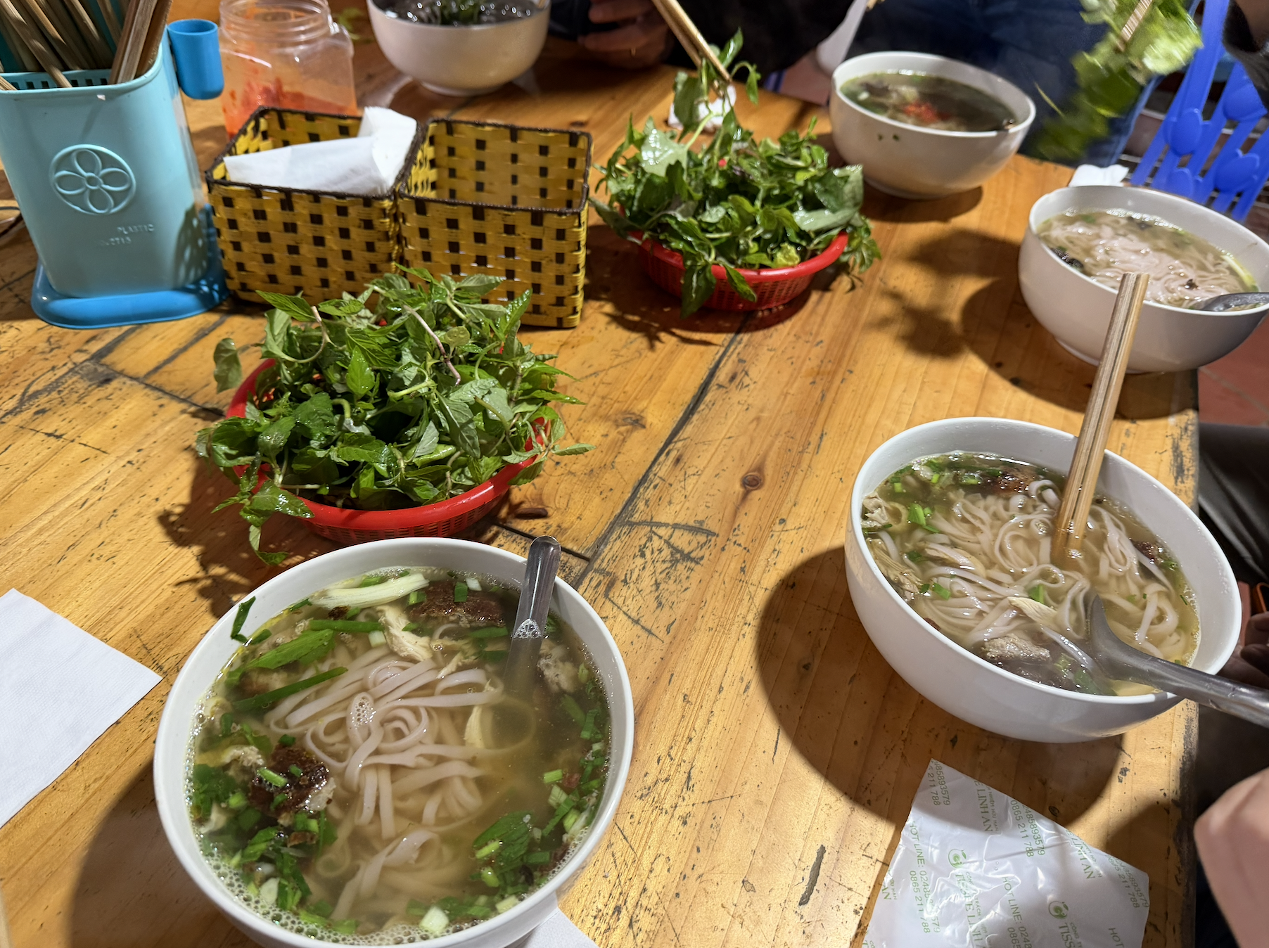 Bac Ha Red Pho គឺជាមុខម្ហូបសម្រាប់អាហារពេលព្រឹក។ គុយទាវមានពណ៌ក្រហមធម្មជាតិពីអង្ករក្នុងស្រុក ទន់ប៉ុន្តែនៅតែរក្សាវាយនភាពទំពារ។ ចានផូត្រូវបានបម្រើជាមួយនឹងទឹកទំពាំងបាយជូរថ្លា ផ្អែមពីឆ្អឹងស្ងោរ ហើយបម្រើជាមួយគ្រឿងជ្រលក់លាយជាមួយសណ្តែកដី និងឱសថ។ ភាពជូរអែម និងភាពសម្បូរបែបធ្វើឱ្យម្ហូបទាំងប្លែក និងធ្លាប់ស្គាល់។ ចាននីមួយៗមានតម្លៃ 30,000 - 40,000 ដុង ល្មមល្មមឱ្យក្តៅពោះ ហើយចាប់ផ្តើមមួយថ្ងៃ នៃការរុករក តំបន់ខ្ពង់រាប។