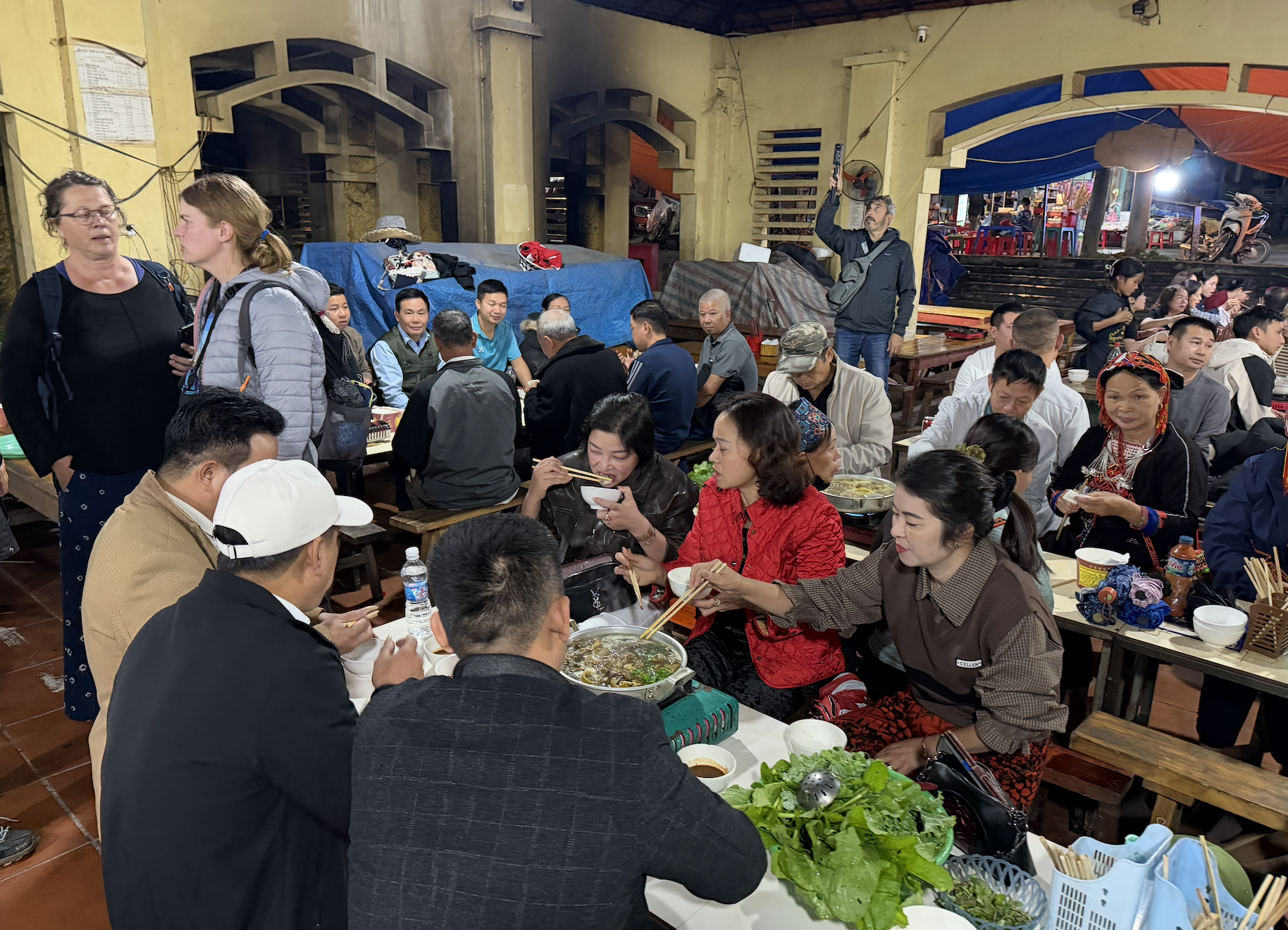 ចំពេលអ័ព្ទអ័ព្ទនៃតំបន់ខ្ពង់រាប ទីធ្លា អាហារ ផ្សារបាក់ហាចាប់ផ្តើមមានភាពអ៊ូអរចាប់ពីម៉ោង៦ព្រឹក។ ពីគ្រប់ភូមិទាំងអស់ ម៉ុង តាវ ជនជាតិតៃ… នាំទំនិញ និងផលិតផលមកប្រមូលផ្តុំនៅផ្សារដ៏ធំបំផុតនៅភាគខាងជើងនេះ។ នៅត្រជាក់នៃ 13-14 ដឺក្រេក្លិនក្រអូបនៃ pho, thang co, បុរសរីករាលដាលពាសពេញលំហ។