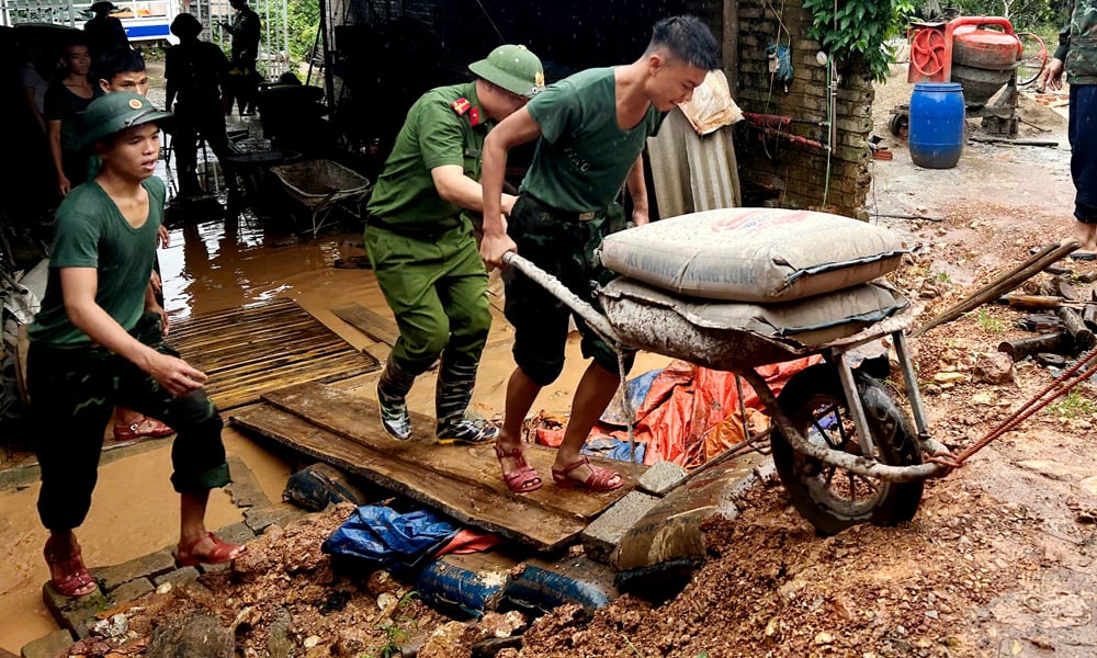 ចូលរួមដោយផ្ទាល់ក្នុងការជួយប្រជាពលរដ្ឋ លោកអនុសេនីយ៍ឯក Trieu Dam Duy នាយរងប៉ុស្តិ៍នគរបាលឃុំ Nam Duong មានប្រសាសន៍ថា៖ «ដោយបានឮការព្យាករណ៍អាកាសធាតុដ៏ស្មុគស្មាញ ចាប់ពីម៉ោង ៥ ព្រឹក អង្គភាពបានចល័តមន្ត្រី និងយោធិន 100% បែងចែកជាក្រុមទៅគ្រួសារដែលជួបការលំបាក និងប្រឈមនឹងគ្រោះទឹកជំនន់ ដើម្បីផ្គត់ផ្គង់ដល់ការបម្រែបម្រួលទ្រព្យសម្បត្តិជាបន្តបន្ទាប់។