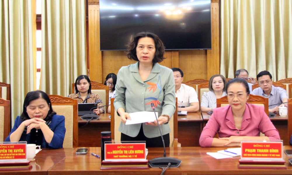 អនុរដ្ឋមន្ត្រីក្រសួងសុខាភិបាល Nguyen Thi Lien Huong ថ្លែងមតិក្នុងកិច្ចប្រជុំ។ |
