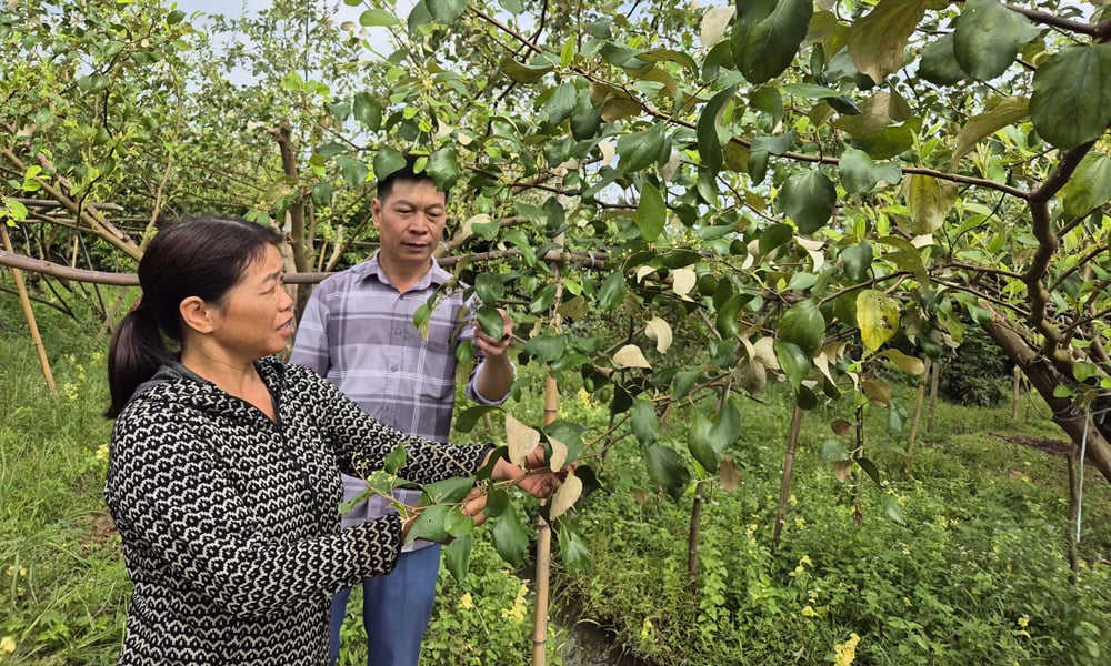 អ្នកស្រី Bui Thi Le ភូមិ Mai To ឃុំ Luc Ngan មានដើមផ្លែប៉ោម ៦ ដើម ដាំបាន ៩ ឆ្នាំហើយ។ បច្ចុប្បន្ននេះ ដើមនីមួយៗមានឫសធំ និងរឹងមាំ កំពុងផ្តល់ផ្លែខ្ចី ហើយរំពឹងថានឹងផ្តល់ផលដំបូងនៅខែធ្នូខាងមុខ។ ឆ្នាំនេះ ទោះបីជាអាកាសធាតុមិនអំណោយផលដោយសារខ្យល់ព្យុះក៏ដោយ ក៏ដោយសារតែការការពារដើមឈើឱ្យបានទាន់ពេលវេលា ការខូចខាតត្រូវបានកាត់បន្ថយយ៉ាងខ្លាំង។ ក្នុងមួយឆ្នាំ សួនផ្លែប៉ោមនាំមកជូនគ្រួសារនាងរាប់សិបលានដុង។ ដោយចែករំលែកអំពីបច្ចេកទេសថែទាំ លោកស្រី ឡឺ បាននិយាយថា លោកស្រីនៅតែពឹងផ្អែកជាចម្បងលើបទពិសោធន៍ប្រពៃណី។ ក្នុងអំឡុងពេលរដូវ នាងជីជាតិជាមួយអាសូត ផូស្វ័រ ប៉ូតាស្យូម និងបន្ថែមជីសរីរាង្គ និងអតិសុខុមប្រាណ ដើម្បីបង្កើនគុណភាពផ្លែឈើ ជួយឱ្យផ្លែប៉ោមមានរសជាតិផ្អែមឆ្ងាញ់។ ទោះជាយ៉ាងណាក៏ដោយ នាងក៏បានសារភាពថា នាងមិនអាចកំណត់បរិមាណពិតប្រាកដនៃជីដែលត្រូវការ ហើយនាងក៏មិនដឹងច្បាស់ថា សារធាតុចិញ្ចឹមណាដែលដើមឈើមានលើស ឬខ្វះខាត។
