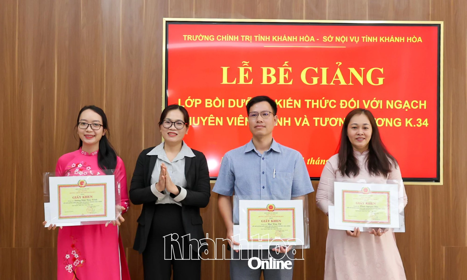 នៅចុងបញ្ចប់នៃវគ្គសិក្សា សិស្សចំនួន 79 នាក់បានទទួលវិញ្ញាបនបត្រ ដែលក្នុងនោះ 97% ត្រូវបានចាត់ថ្នាក់ថាល្អ។ ក្នុងឱកាសនេះ សាលានយោបាយខេត្ត Khanh Hoa បានប្រគល់រង្វាន់ដល់សិស្សានុសិស្សចំនួន ៣ នាក់ដែលមានស្នាដៃល្អក្នុងការសិក្សា និងបណ្តុះបណ្តាល។
