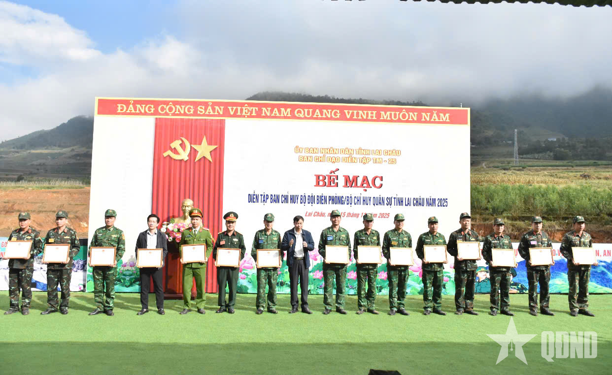 ក្នុងឱកាសនេះ បញ្ជាការដ្ឋានយោធភូមិភាគទី ២ និងខេត្ត Lai Chau បានលើកសរសើរសមូហភាពចំនួន ១០ និងបុគ្គលចំនួន ២៣ នាក់ដែលមានស្នាដៃឆ្នើមក្នុងលំហាត់សមយុទ្ធយោធាការពារព្រំដែនឆ្នាំ ២០២៥។