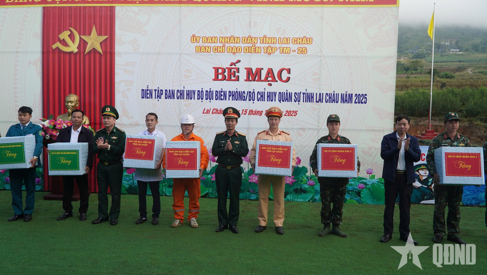 ថ្នាក់ដឹកនាំខេត្ត Lai Chau បញ្ជាការដ្ឋានយោធភូមិភាគទី២ និងបញ្ជាការដ្ឋានឆ្មាំព្រំដែនបានប្រគល់អំណោយលើកទឹកចិត្តដល់កងកម្លាំងដែលចូលរួមក្នុងសមយុទ្ធនេះ។