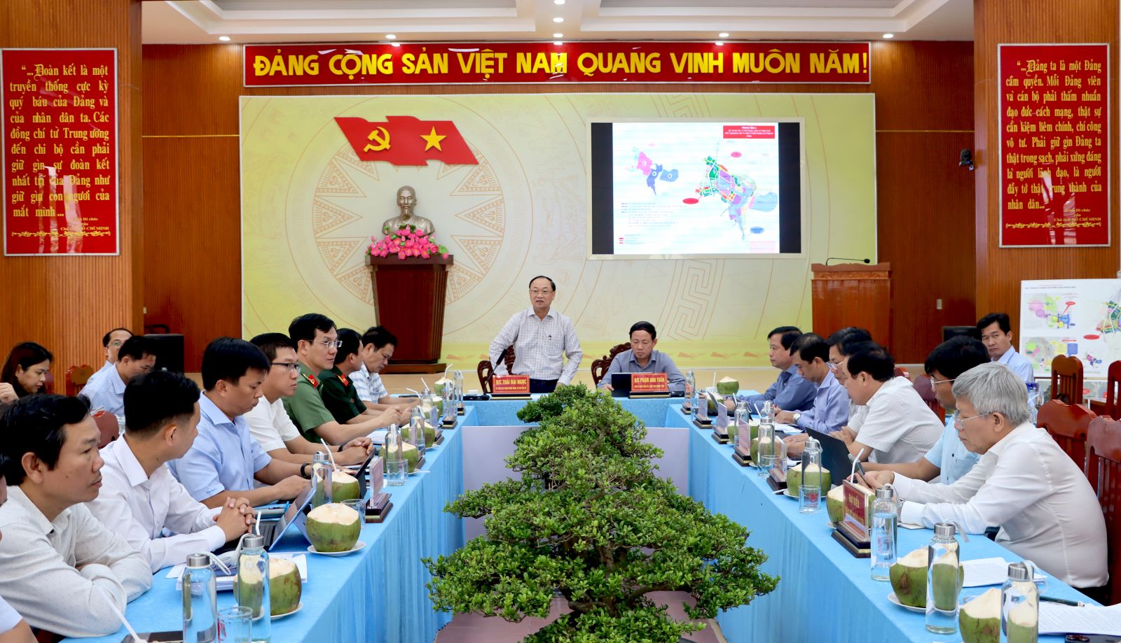 លេខាបក្សខេត្ត Thai Dai Ngoc បានទទួលស្គាល់ និងវាយតម្លៃខ្ពស់ចំពោះកិច្ចខិតខំប្រឹងប្រែងរបស់គ្រប់កម្រិត និងគ្រប់វិស័យក្នុងការអនុវត្តការងារក្នុងវិសាលភាពភារកិច្ច និងអំណាចរបស់ស្ថាប័ន អង្គភាពរបស់ខ្លួន។ ទន្ទឹមនឹងនោះ លោកបានតម្រូវឱ្យបុគ្គលិក ជាពិសេសថ្នាក់ដឹកនាំគណៈកម្មាធិការបក្ស អាជ្ញាធរគ្រប់លំដាប់ថ្នាក់ និងមន្ទីរ អង្គភាពនានា ផ្លាស់ប្តូរទស្សនៈ និងការគិត "គិតឱ្យស៊ីជម្រៅ ធ្វើកិច្ចការធំ" ហើយចុះទៅមូលដ្ឋានឱ្យបានទៀងទាត់ ដើម្បីក្តាប់ស្ថានការណ៍ និងណែនាំភ្លាមៗ និងលុបបំបាត់ការលំបាក និង "បញ្ហាស្ទះ" ដល់មូលដ្ឋាន។