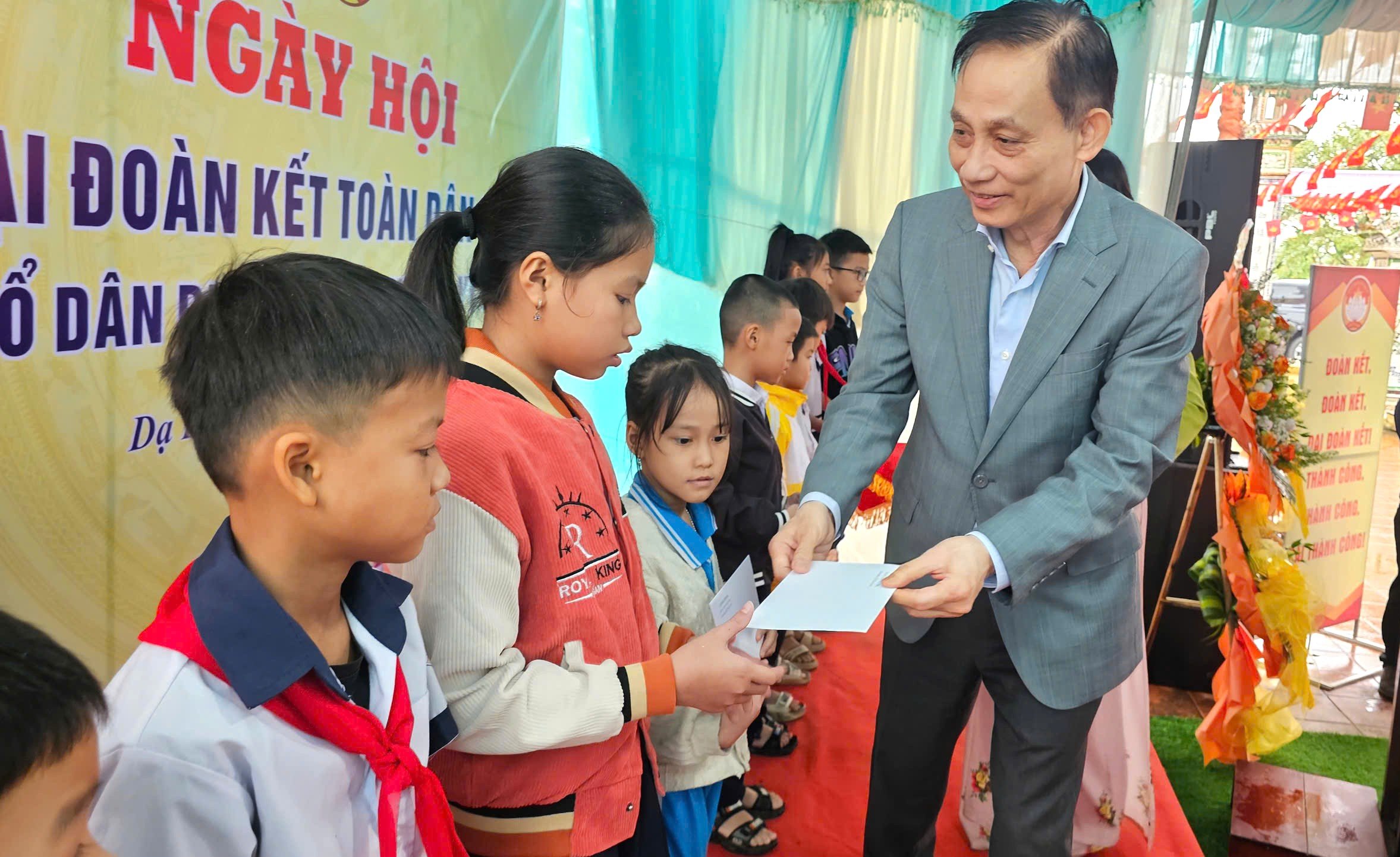 | លេខាគណៈកម្មាធិការមជ្ឈិមបក្ស រដ្ឋមន្ត្រីក្រសួងការបរទេស Le Hoai Trung ជូនអំណោយដល់និស្សិតនៃក្រុមលំនៅដ្ឋាន Da Le |