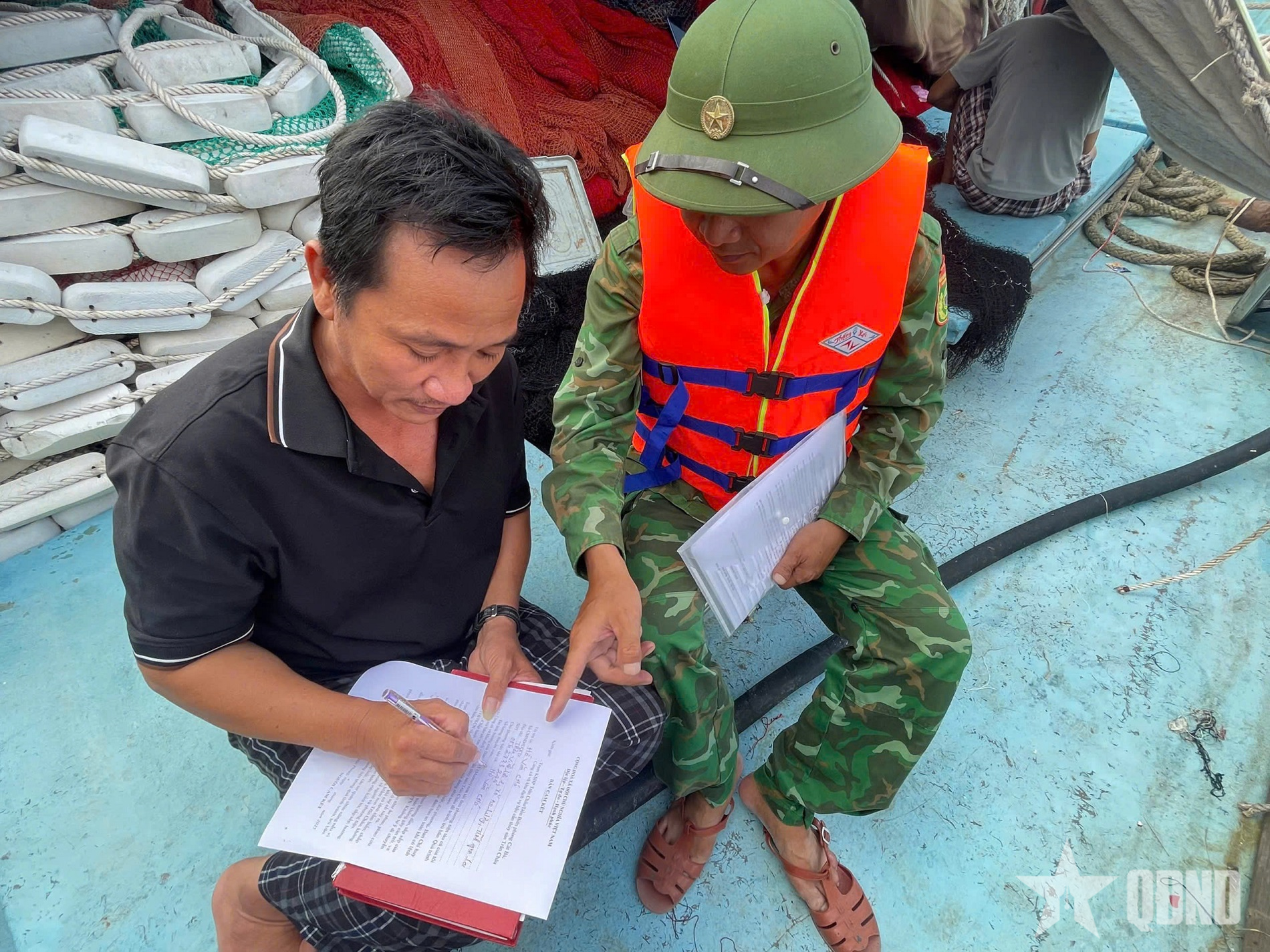 ឆ្មាំព្រំដែនទីក្រុង Hai Phong ផ្សព្វផ្សាយ និងបំផុសអ្នកនេសាទ ប្តេជ្ញាមិនឲ្យនៅលើយានជំនិះរបស់ពួកគេនៅពេលព្យុះបោកបក់។ |
