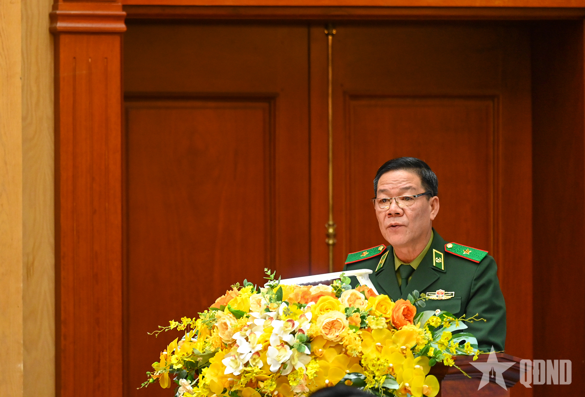 | នាយឧត្តមសេនីយ៍ Van Ngoc Que អនុប្រធាននាយកដ្ឋាននយោបាយនៃឆ្មាំព្រំដែនបានថ្លែងនៅក្នុងសន្និសីទ។ |