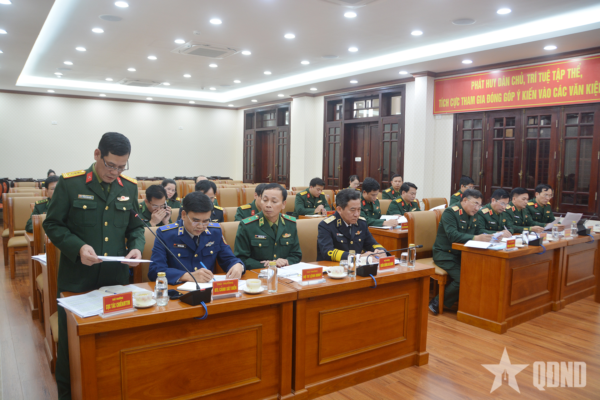 ឧត្តមសេនីយ៍ឯក Le Quang Dao អគ្គមេបញ្ជាការរងនៃអគ្គសេនាធិការកងទ័ពប្រជាជនវៀតណាម ប្រធានគណៈកម្មាធិការដឹកនាំរបស់ក្រសួងការពារជាតិស្តីពី IUU បានអញ្ជើញជាអធិបតីកិច្ចប្រជុំ។ |