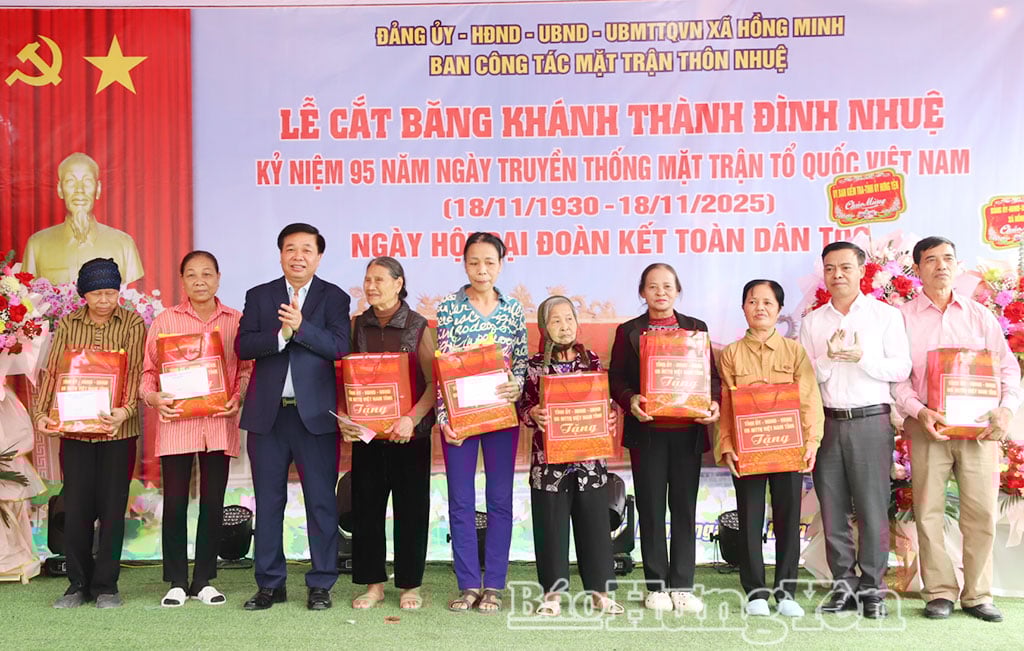 នៅឃុំ Hong Minh ពិធីកាត់ខ្សែបូរវត្ថុបុរាណរបស់សហគមន៍ភូមិ Nhue និងទិវាឯកភាពជាតិដ៏អស្ចារ្យបានប្រព្រឹត្តទៅនៅភូមិ Nhue។ អញ្ជើញចូលរួមក្នុងពិធី និងពិធីបុណ្យនេះមានសមមិត្ត Nguyen Quang Hung សមាជិកគណៈកម្មាធិការអចិន្ត្រៃយ៍ ប្រធានគណៈកម្មាធិការអធិការកិច្ចបក្សខេត្ត។