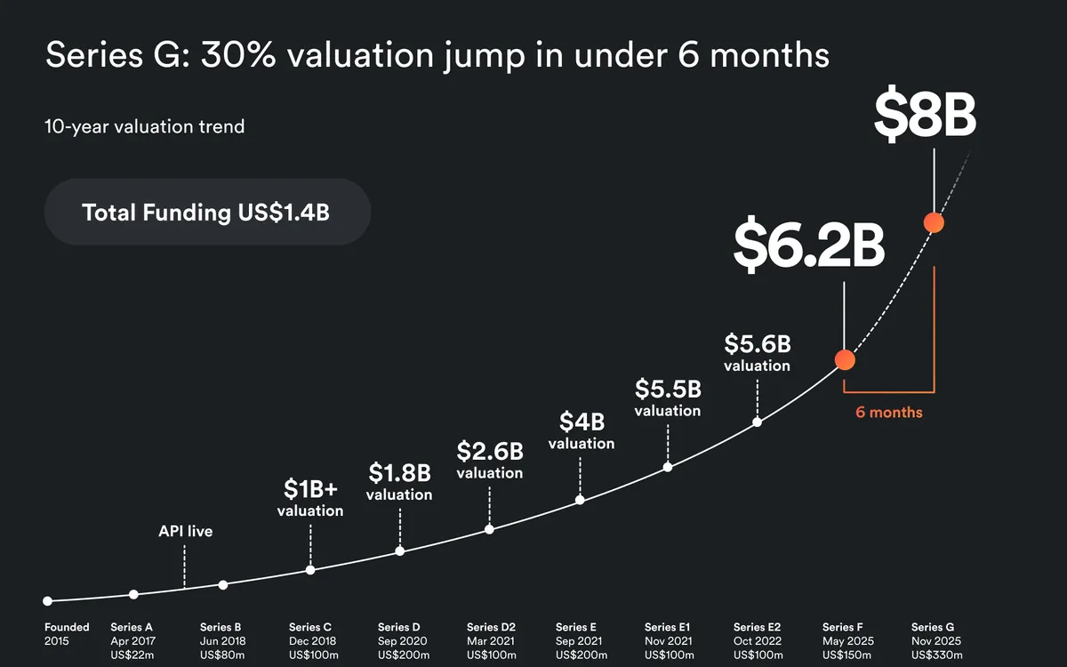 នេះបើតាមសារព័ត៌មាន Financial Times។ Airwallex ទើបតែរៃអង្គាសប្រាក់បាន 330 លានដុល្លារដោយជោគជ័យនៅក្នុងវគ្គផ្តល់មូលនិធិស៊េរី G របស់ខ្លួន។ កិច្ចព្រមព្រៀងនេះនាំមកនូវតម្លៃរបស់ Airwallex ដល់ 8 ពាន់លានដុល្លារ កើនឡើងប្រហែល 30% ពីស៊េរី F របស់ខ្លួនកាលពីប្រាំមួយខែមុន។
