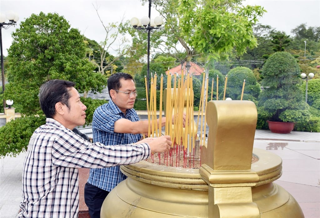 អនុប្រធានគណៈកម្មាធិការប្រជាជនខេត្ត លោក Ngo Vu Thang (ខាងក្នុង) បានអុជធូប និងថ្លែងអំណរគុណចំពោះវីរជនពលី។