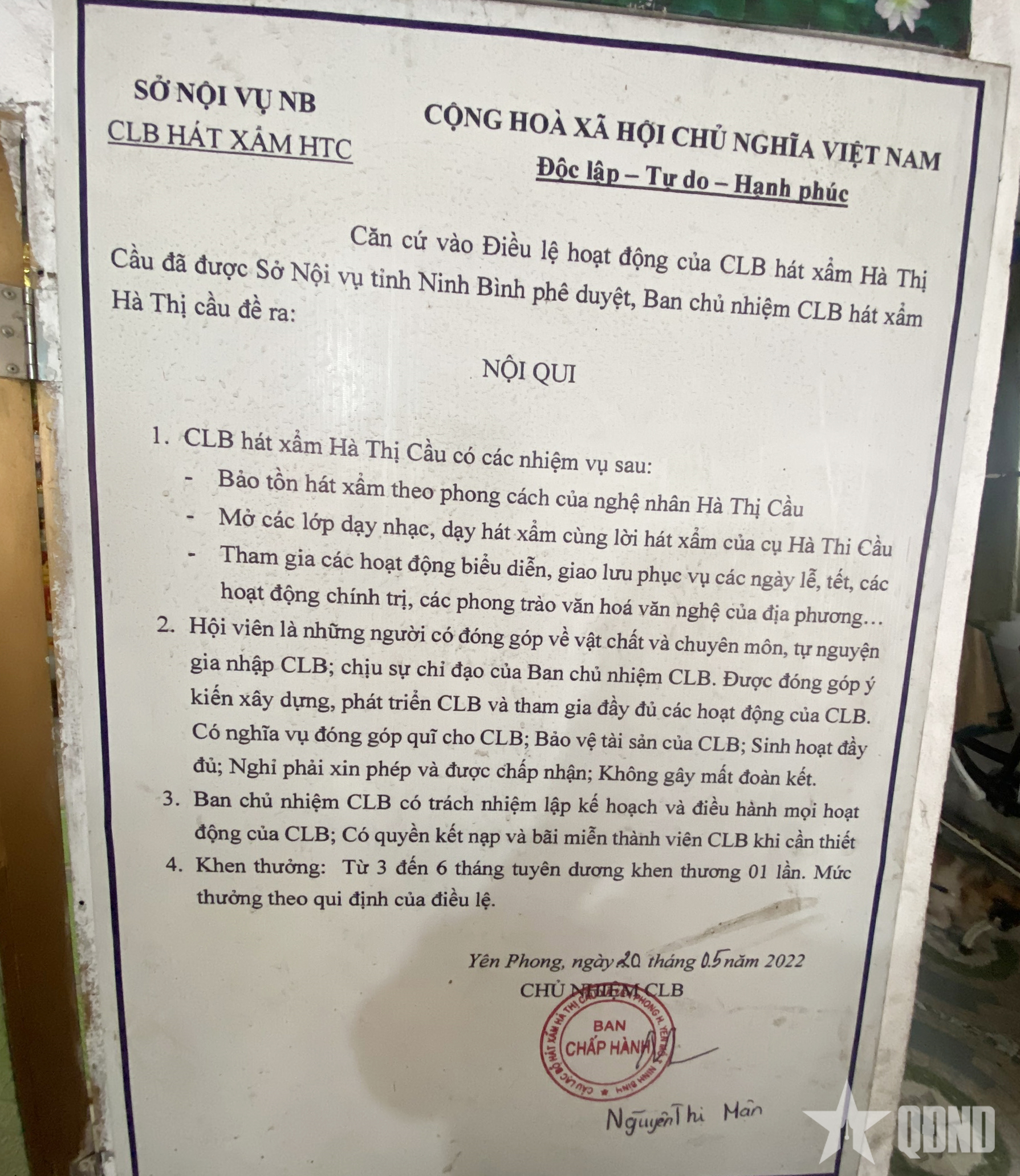 ចែករំលែកជាមួយពួកយើង លោកស្រី Nguyen Thi Man ប្រធានក្លឹបច្រៀង Ha Thi Cau Xam បាននិយាយថា ក្លឹបនេះត្រូវបានបង្កើតឡើងក្នុងឆ្នាំ 2021 ប៉ុន្តែពីមុនមក សកម្មភាពច្រៀង Xam នៅទីនេះនៅតែត្រូវបានបន្សល់ទុកតាំងពីពេលដែលលោក Cau នៅរស់រហូតដល់គាត់ស្លាប់។ បច្ចុប្បន្នក្លឹបមានសមាជិកចំនួន 33 នាក់ ដែលក្នុងនោះការច្រៀង Xam ត្រូវបានបង្រៀនដោយឥតគិតថ្លៃដល់មនុស្សគ្រប់វ័យ ដោយផ្តល់អាទិភាពដល់សិស្សដែលមានអាយុយ៉ាងតិច 4 ឆ្នាំ។
