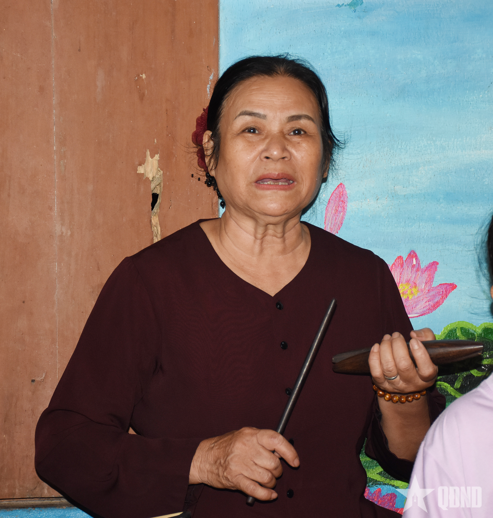 អ្នកស្រី Mai Thi Sach (ឆ្វេង) ចូលរួមយ៉ាងសកម្មក្នុងការបង្រៀនចម្រៀង Xam។ |