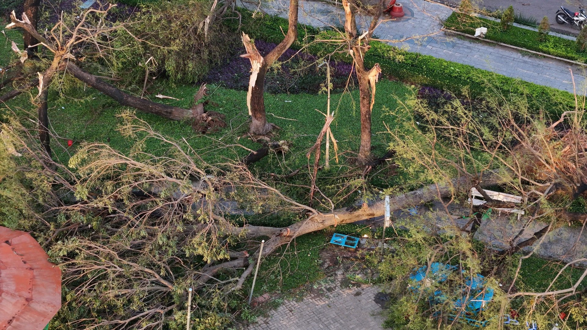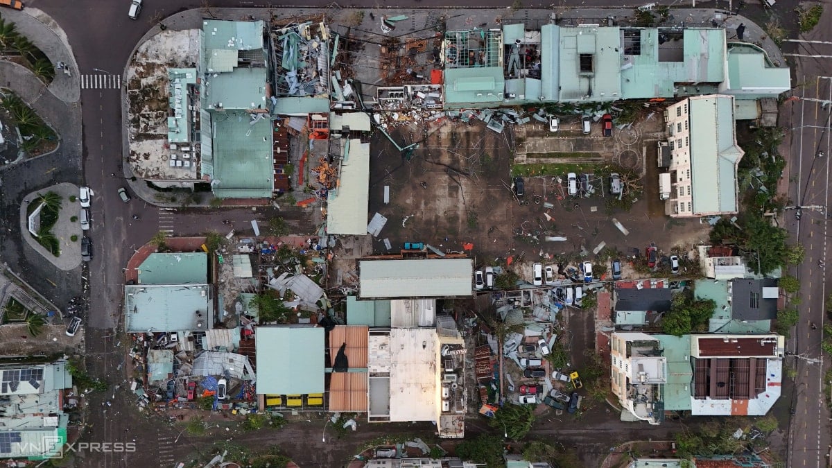 នៅតាមដងផ្លូវឆ្នេរសមុទ្រ Quy Nhon (ខេត្ត Gia Lai) ផ្ទះ ហាង និងសណ្ឋាគារជាច្រើនបានរលំដំបូល។ ជាមួយនឹងអគារខ្ពស់ៗជាច្រើន និងកន្លែង ទេសចរណ៍ នេះគឺជាកន្លែងមួយក្នុងចំណោមកន្លែងដែលរងការខូចខាតយ៉ាងធ្ងន់ធ្ងរបំផុតបន្ទាប់ពីព្យុះ។