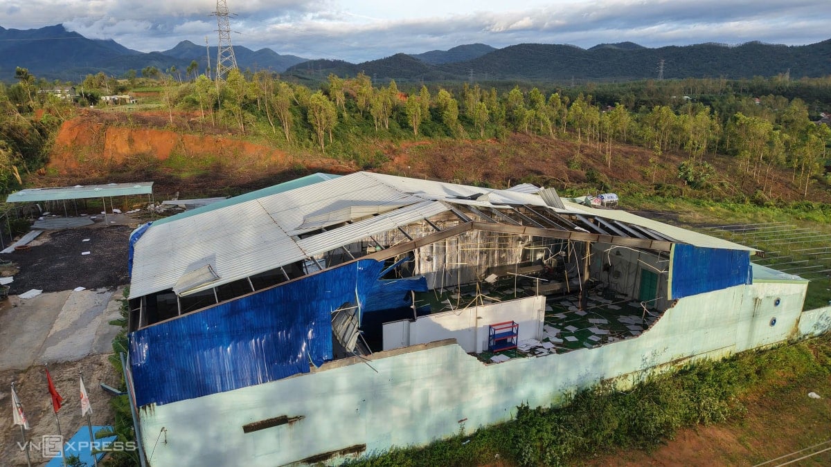 រោងចក្រធ្វើនំមួយនៅតំបន់ Phu My ខេត្ត Gia Lai បានបាក់ដំបូលដែកដែលត្រូវខ្យល់ព្យុះ។
