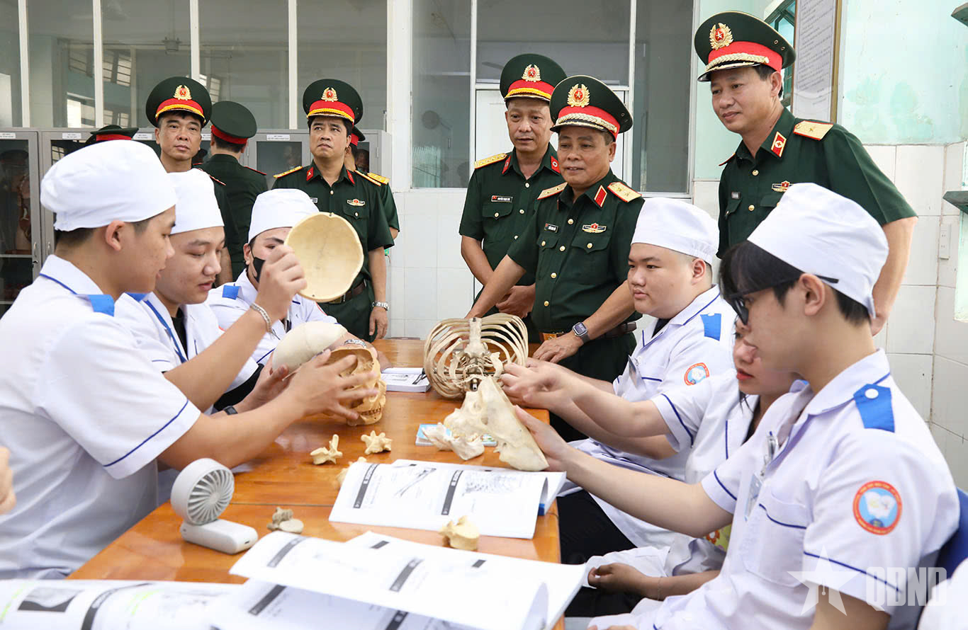 បន្ទាប់ពីបានពិនិត្យជាក់ស្តែងនៅមហាវិទ្យាល័យភស្តុភារទី 2 លោកឧត្តមសេនីយ៍ឯក Tran Minh Duc បានទទួលស្គាល់ និងកោតសរសើរចំពោះការខិតខំប្រឹងប្រែង និងលទ្ធផលដ៏ទូលំទូលាយដែលសាលាសម្រេចបាន។ ទន្ទឹមនឹងនោះ លោកបានស្នើឱ្យគណៈកម្មាធិការបក្ស និងក្រុមប្រឹក្សាសាលាបន្តអនុវត្តឱ្យបានហ្មត់ចត់ និងម៉ឺងម៉ាត់នូវសេចក្តីសម្រេចចិត្ត និងសេចក្តីណែនាំរបស់គណៈកម្មាធិការមជ្ឈិមបក្ស និង ក្រសួងការពារជាតិ ស្តីពីការអប់រំ និងបណ្តុះបណ្តាល; ពិនិត្យ កែសំរួល និងបំពេញកម្មវិធីបណ្តុះបណ្តាលជំនាញ ដើម្បីធានាថាពួកគេមានភាពជិតស្និទ្ធនឹងការពិត។ ស្នើដំណោះស្រាយដើម្បីអនុវត្តលក្ខណៈវិនិច្ឆ័យដែលបានកំណត់សម្រាប់សាលាទំនើប និងឆ្លាតវៃដែលទាក់ទងនឹងការផ្លាស់ប្តូរឌីជីថលជាមូលដ្ឋាន ដើម្បីបង្កើនគុណភាពនៃការបណ្តុះបណ្តាលសម្រាប់បុគ្គលិកពេទ្យ និងភស្តុភារសម្រាប់កងទ័ព។