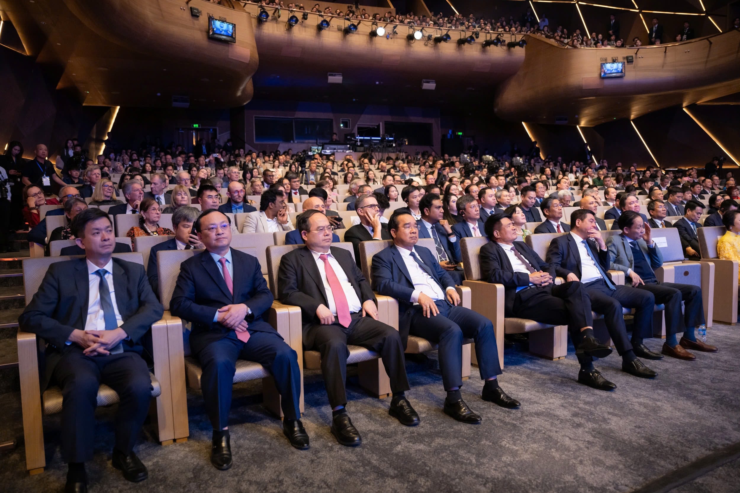 ប្រធានរដ្ឋសភាបានទទួលស្គាល់ វាយតម្លៃខ្ពស់ និងថ្លែងអំណរគុណយ៉ាងស្មោះស្ម័គ្រចំពោះកិច្ចខិតខំប្រឹងប្រែង ការប្តេជ្ញាចិត្ត និងការទទួលខុសត្រូវខ្ពស់របស់ស្ថាបនិកមូលនិធិ VinFuture - លោក Pham Nhat Vuong និងភរិយា ដែលបានលះបង់នូវភាពរីករាយ និងធនធានដ៏មហិមាក្នុងការលើកតម្កើងពានរង្វាន់វិទ្យាសាស្ត្រ រួមចំណែកផ្សព្វផ្សាយតម្លៃមនុស្សធម៌នៃមនុស្សជាតិ វិទ្យាសាស្ត្រ និងរូបភាពរបស់ប្រទេសវៀតណាម។ ក្តីមេត្តា ឆន្ទៈ និងសេចក្តីប្រាថ្នាក្នុងការអភិវឌ្ឍន៍។