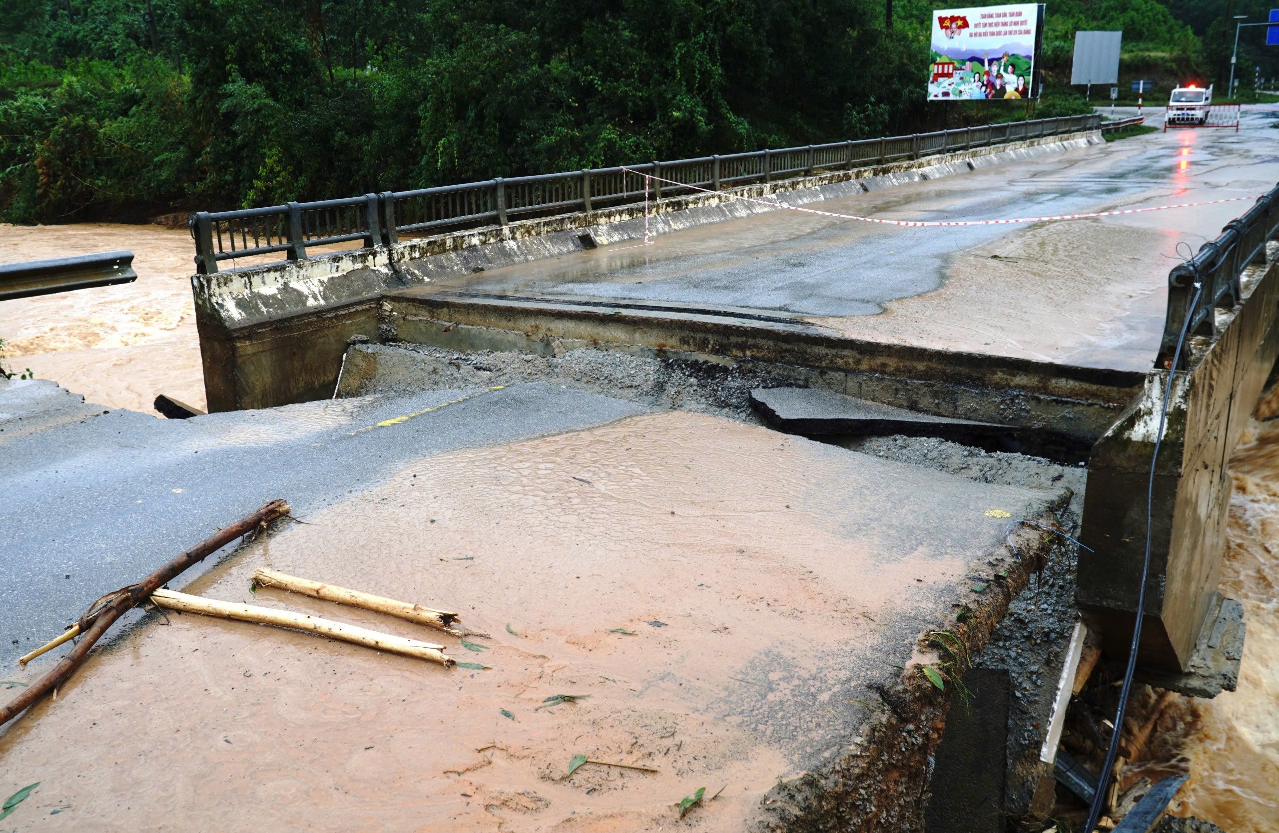 នៅកន្លែងកើតហេតុ ក្រុមការងារបានចុះពិនិត្យការបាក់រលំស្ពាន Phu Mau (Km20+25 ឃុំខេត្រ) រចនាសម្ព័ន្ធទាំងមូលនៅក្រោមស្ពានត្រូវបានទឹកជន់ឡើងលិច។ បន្ទាប់មក ក្រុមការងារបានចុះពិនិត្យតំបន់ស្ពាន Leno តភ្ជាប់ឃុំខេត្រ និងឃុំណាំដុង ដែលត្រូវបានទឹកជន់លិចផងដែរ បណ្តាលឲ្យបាក់ជើងស្ពាន។