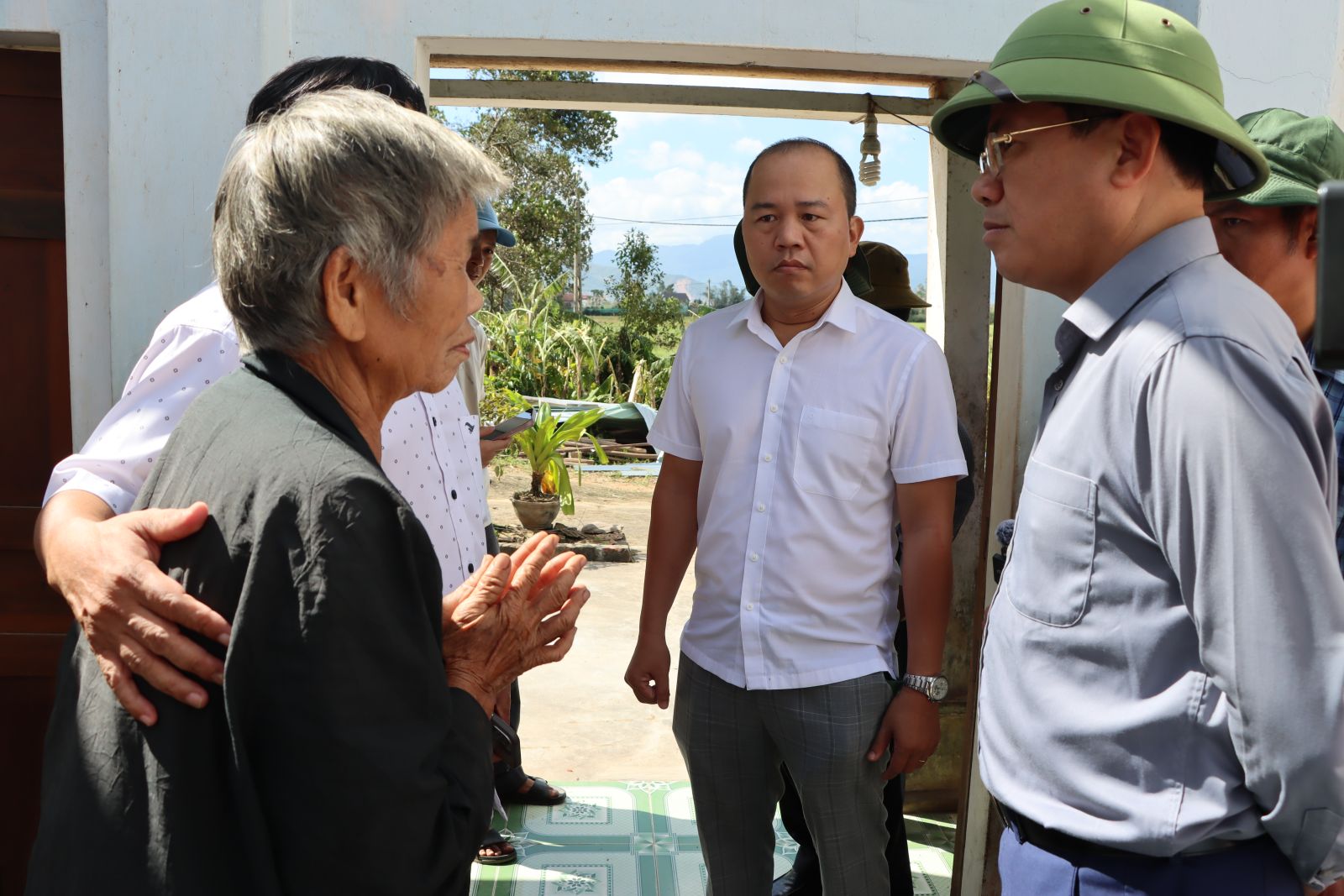 ការចុះសួរសុខទុក្ខ និងលើកទឹកចិត្តគ្រួសារលោកស្រី Huynh Thi Len (ភូមិ Kim Giao Thien សង្កាត់ Hoai Nhon Dong) ដែលផ្ទះត្រូវបានដួលរលំទាំងស្រុង សមមិត្ត Pham Anh Tuan បានចែករំលែក និងសម្តែងការអាណិតអាសូរចំពោះការបាត់បង់ដ៏ធំធេងរបស់គ្រួសារនេះ។ អាស្រ័យហេតុនេះ លោកបានសំណូមពរដល់ប្រជាពលរដ្ឋជុំវិញតំបន់នេះ មេត្តាជួយសម្របសម្រួលឱ្យបានល្អជាមួយអាជ្ញាធរមូលដ្ឋាន ក្នុងការរៀបចំការជម្លៀសប្រជាពលរដ្ឋ នៅពេលមានការជូនដំណឹងអំពីគ្រោះធម្មជាតិ ខ្យល់ព្យុះ និងទឹកជំនន់។
