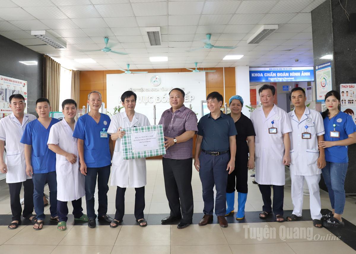 គណៈប្រតិភូបានផ្តល់អំណោយលើកទឹកចិត្តដល់វេជ្ជបណ្ឌិត និងគិលានុបដ្ឋាយិកានៅមន្ទីរពេទ្យទូទៅ Ha Giang។ |