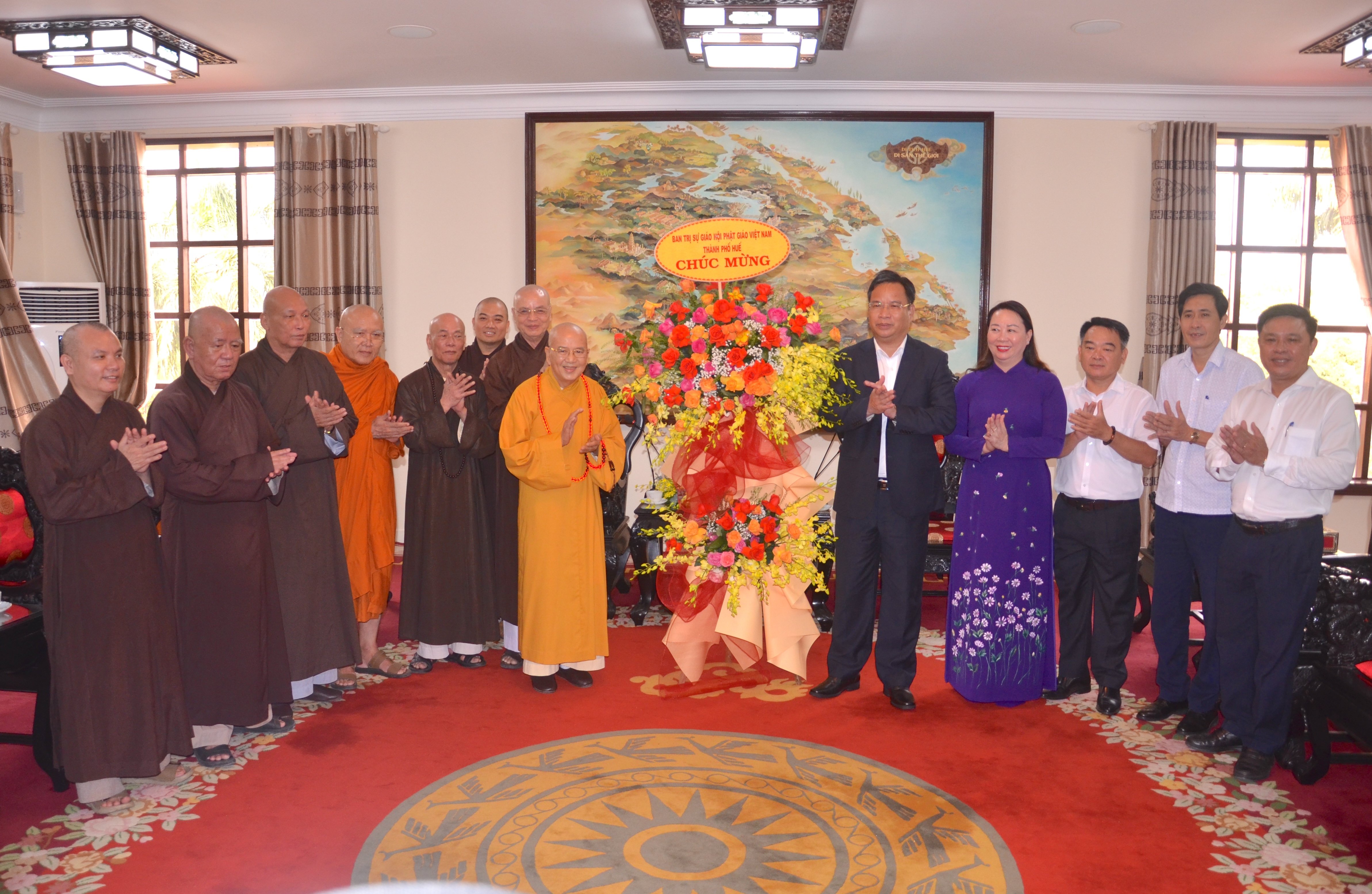 គណៈកម្មាធិការប្រតិបត្តិនៃគណៈសង្ឃពុទ្ធសាសនាវៀតណាមនៅទីក្រុង Hue បានថ្វាយកម្រងផ្កាអបអរសាទរចំពោះជោគជ័យនៃមហាសន្និបាត។ |