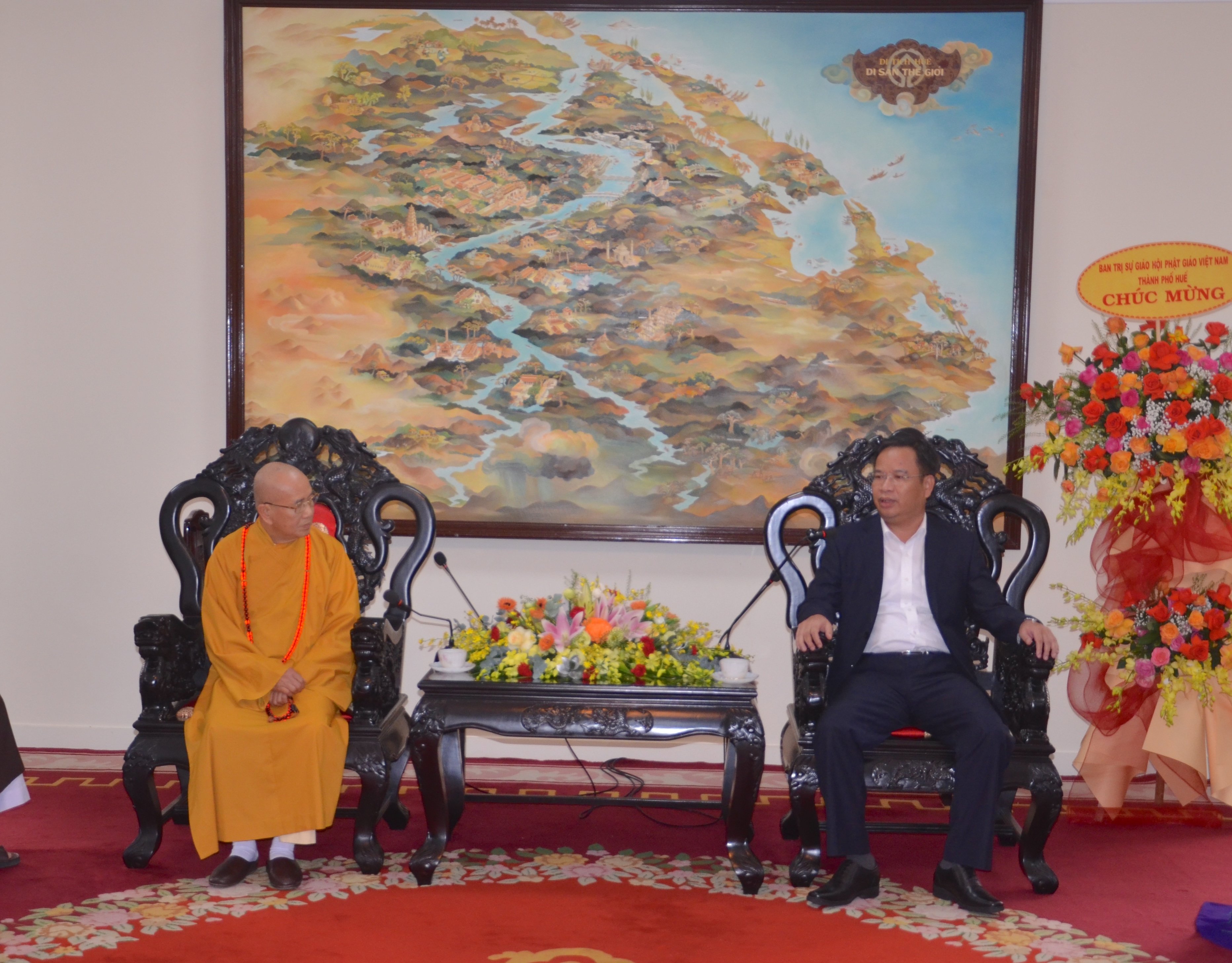 អនុលេខាគណៈកម្មាធិការបក្សទីក្រុង លោក Pham Duc Tien បានផ្លាស់ប្តូរព័ត៌មានជាមួយព្រះតេជគុណ Thich Khe Chon និងគណៈប្រតិភូគណៈកម្មាធិការប្រតិបត្តិនៃគណៈសង្ឃព្រះពុទ្ធសាសនាវៀតណាមនៅទីក្រុង Hue ។ |