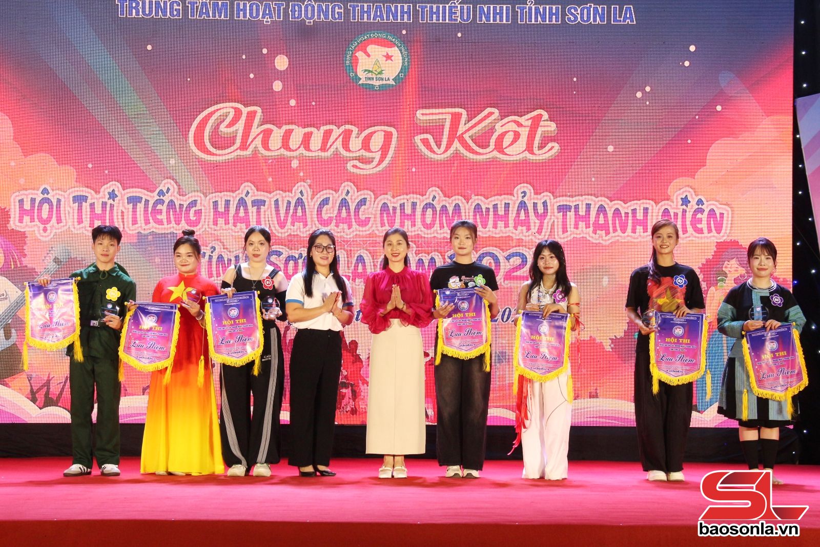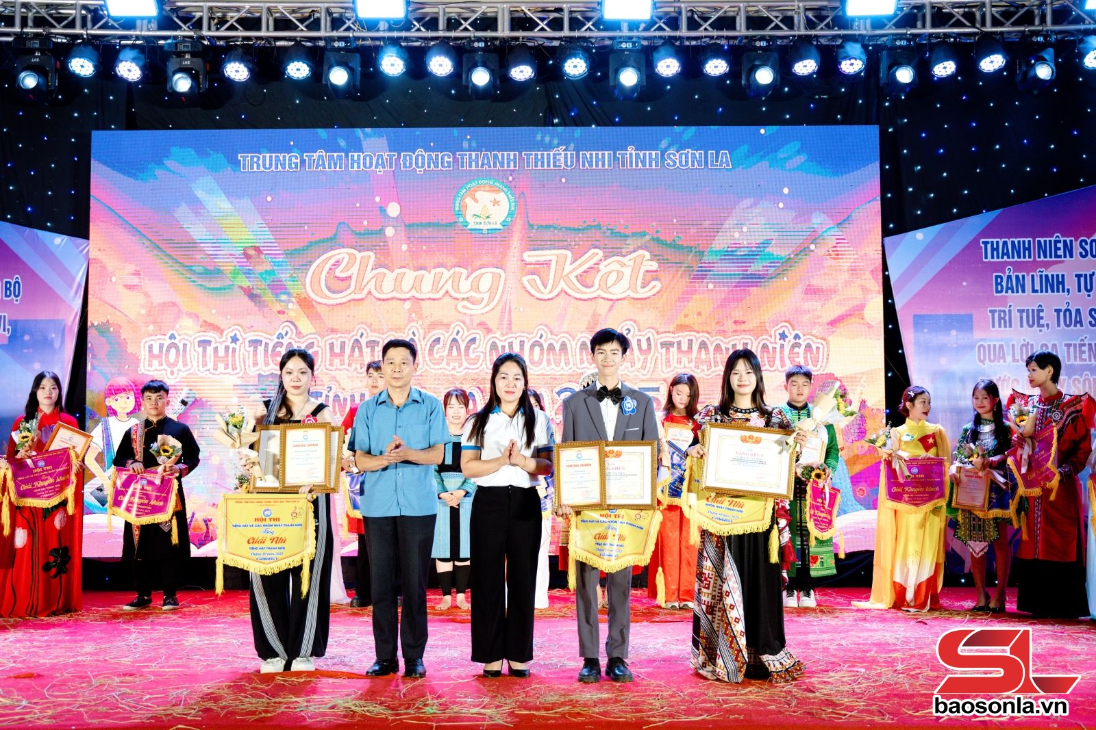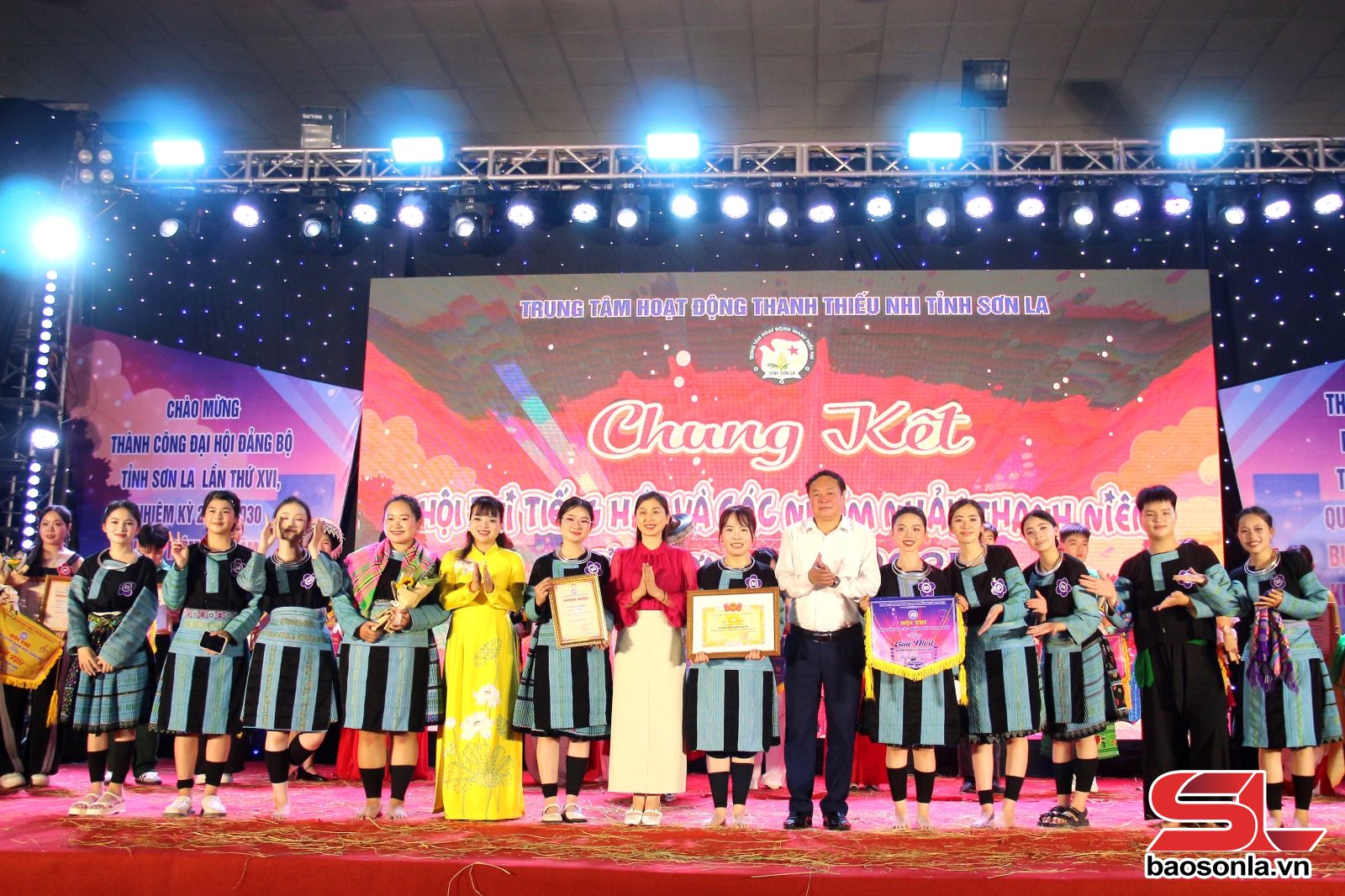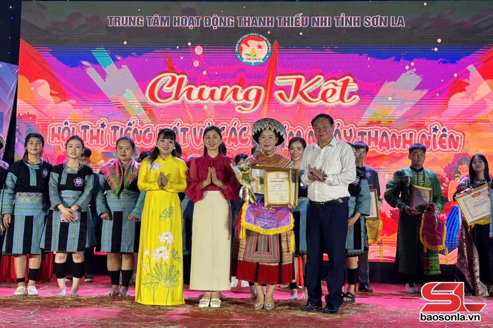 គណកម្មាធិការរៀបចំបានប្រគល់រង្វាន់លើកទី១ ក្នុងការប្រលងចម្រៀង ដល់បេក្ខនារី Tong Thi Thanh Diep សិស្សថ្នាក់ទី១២ វិទ្យាល័យ Chieng Sinh។