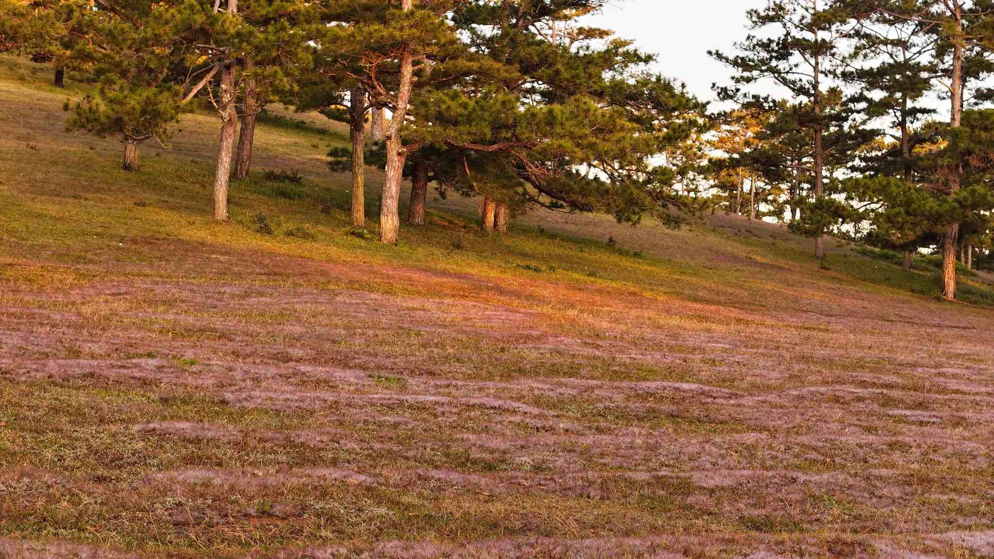 ភ្នំស្មៅពណ៌ផ្កាឈូកច្រើនតែដុះប្រមូលផ្តុំនៅលើភ្នំដ៏ទន់ភ្លន់ ឬកាត់គ្នាក្នុងព្រៃស្រល់។ រូបថត៖ បាវអាន