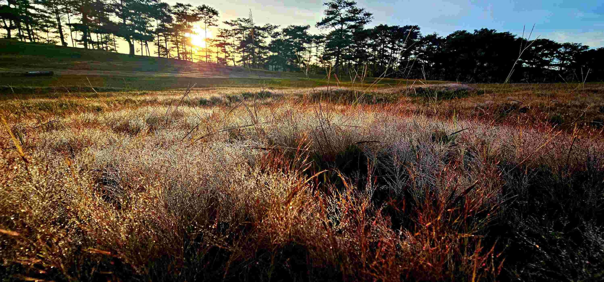នៅពេលដែលទឹកសន្សើមនៅលើស្លឹកនៅតែមាន ហើយពន្លឺព្រះអាទិត្យពេលព្រឹកព្រលឹមចុះមក ផ្ទៃស្មៅឆ្លុះបញ្ចាំងពីពន្លឺ បង្កើតបានជាពន្លឺចែងចាំងដូចជាគ្របដណ្តប់ដោយស្រទាប់ស្តើងនៃព្រិល។ ដូច្នេះហើយ អ្នកស្រុកក៏ហៅវាថា "រដូវស្មៅព្រិល"។ រូបថត៖ បាវអាន