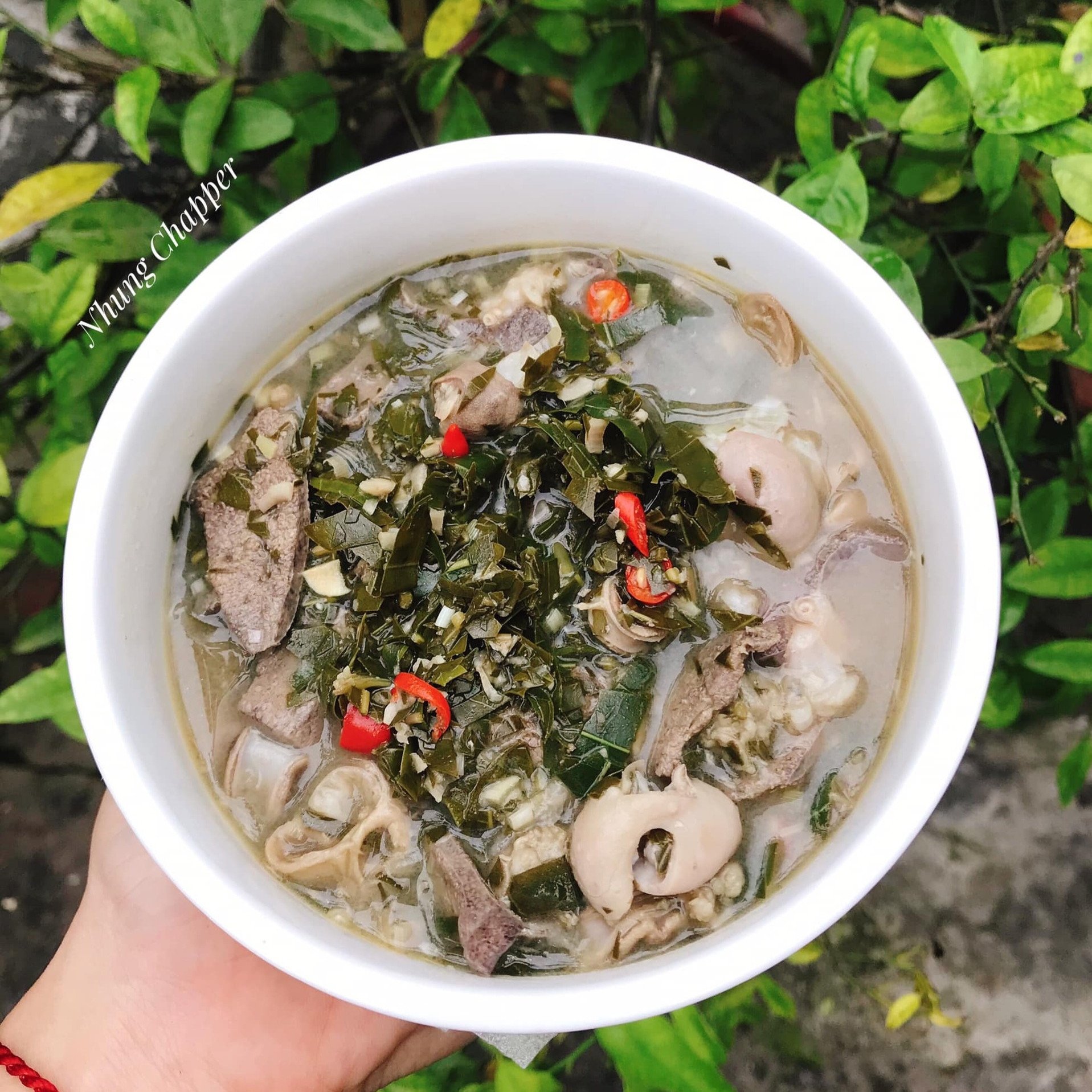 ប៉ុន្តែបន្ទាប់ពីពីរបីស្លាបព្រា រសជាតិផ្អែម ត្រជាក់ និងខ្លាញ់នៃឈាម និងសរីរាង្គនឹងធ្វើឱ្យមនុស្សជាច្រើនលង់ស្នេហ៍។ មុខម្ហូបនេះមានការរួមផ្សំនៃរសជាតិជូរ ហឹរ និងល្វីង ជាពិសេសឆ្ងាញ់នៅថ្ងៃត្រជាក់ ញ៉ាំហើយលាន់មាត់ក្នុងពេលតែមួយ។ នេះក៏ជាឱសថបំបាត់ការហៀរសំបោរដ៏មានប្រសិទ្ធភាពផងដែរ។
